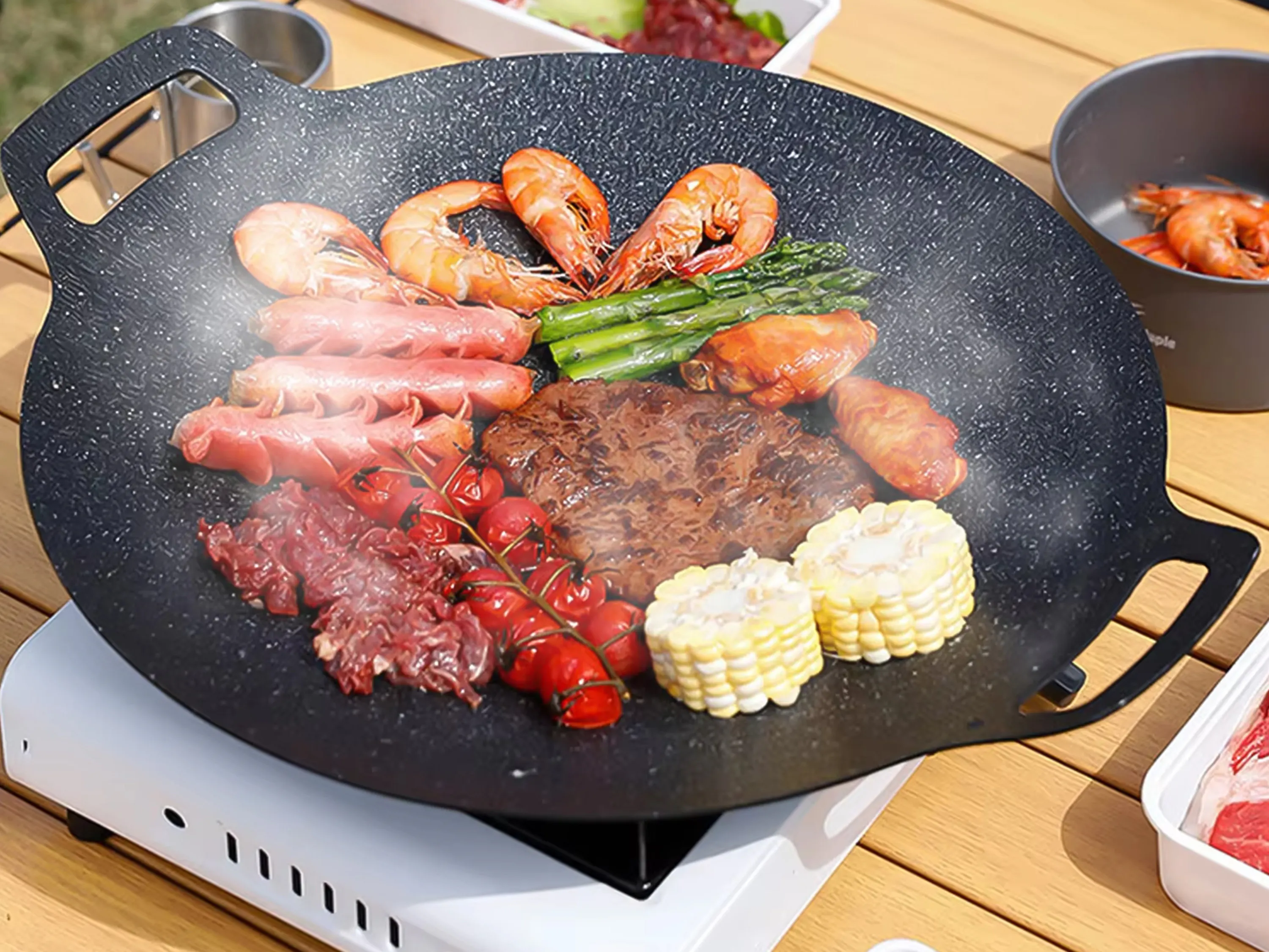 GRILLPANは通常のフライパンとは異なり、調理後にそのままお皿としても使うことができます。これにはさまざまなメリットがあり、特に料理の美味しさを引き立てる点で優れています。