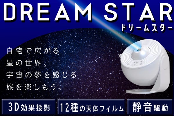 ドリームスターです!あと4時間です!是非ご支援を!奈良県 40代 Hさん「想像よりかなりダイナミック」ベットサイドランプとして使っています。タイマーがあるので安心なことと、かなり気持ち的に落ち着くので、睡眠の質が上がった気がしてます。もともと天体が好きなので、寝る前の癒しの時間として重宝しています。大阪府 40代 Mさん「めっちゃ楽しんでます。」プレゼントにいつもなににしようか悩むのですが、こちらをモニターとしていただき、子供にプレゼントしたら、(息子:小3)なんでもすぐ飽きるのですが、たくさんフィルムがあって、飽きずに寝る前に選んで楽しみにしています。投影がめちゃくちゃきれいで私自身も癒されてかなり気に入っています。大人も楽しめるムーディーなライト、かなり良いです、おすすめです。特別なデートでロマンチックな雰囲気を演出するのにも理想的です。柔らかな光が温かい空間を作り出し、親密な時間を演出します。また、一人でリラックスしたいときには、心を癒す存在となり、安らぎを与えてくれることでしょう。機能的でありながら、心地よい眠りを促す常夜灯としても利用でき、さまざまなシーンでその魅力を発揮します。DREAM STARは、あなたの生活に温もりと安心感をもたらすことでしょう。