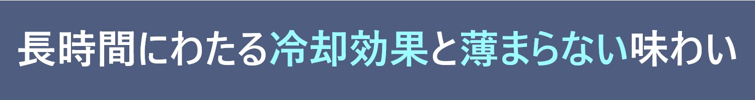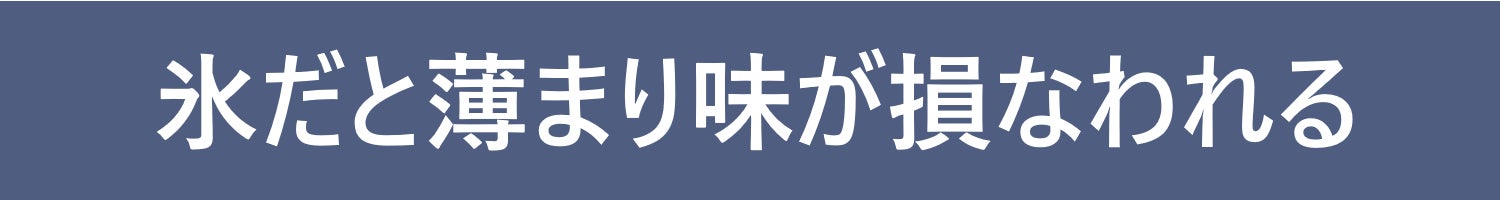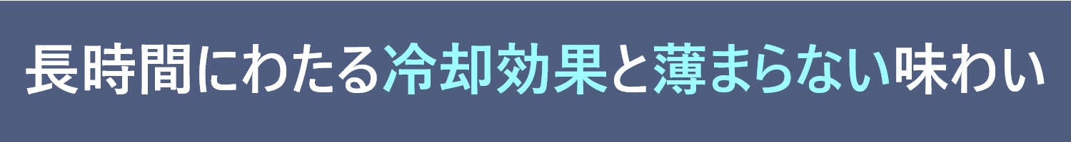 従来の氷では実現できなかった、長時間にわたる冷却効果と薄まらない味わい。