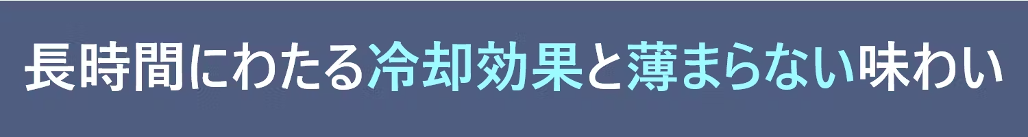 • 従来の氷では実現できなかった、長時間にわたる冷却効果と薄まらない味わい。