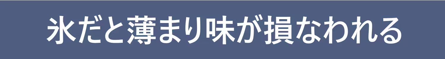 従来の氷: 氷が溶けることでドリンクが薄まり、味わいが損なわれる…
