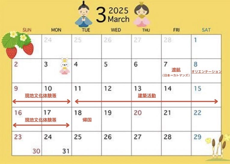 現段階の決定事項としては、渡航場所、日程および現地でのプログラム概要が決定しております。