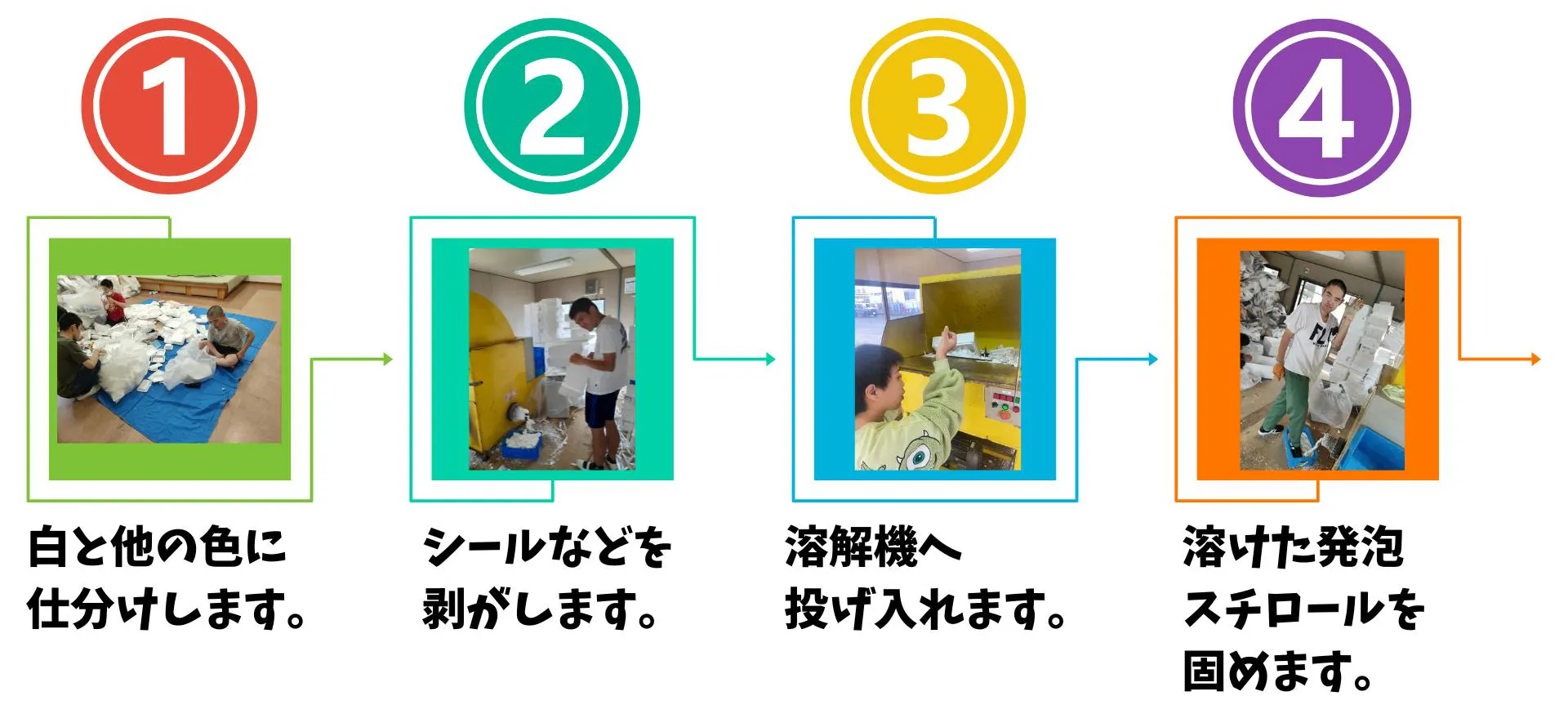 平成28年から行っている発泡スチロール溶解作業は、近隣のスーパーや産廃業者の方々からのご協力があり、8年間続けてきました。