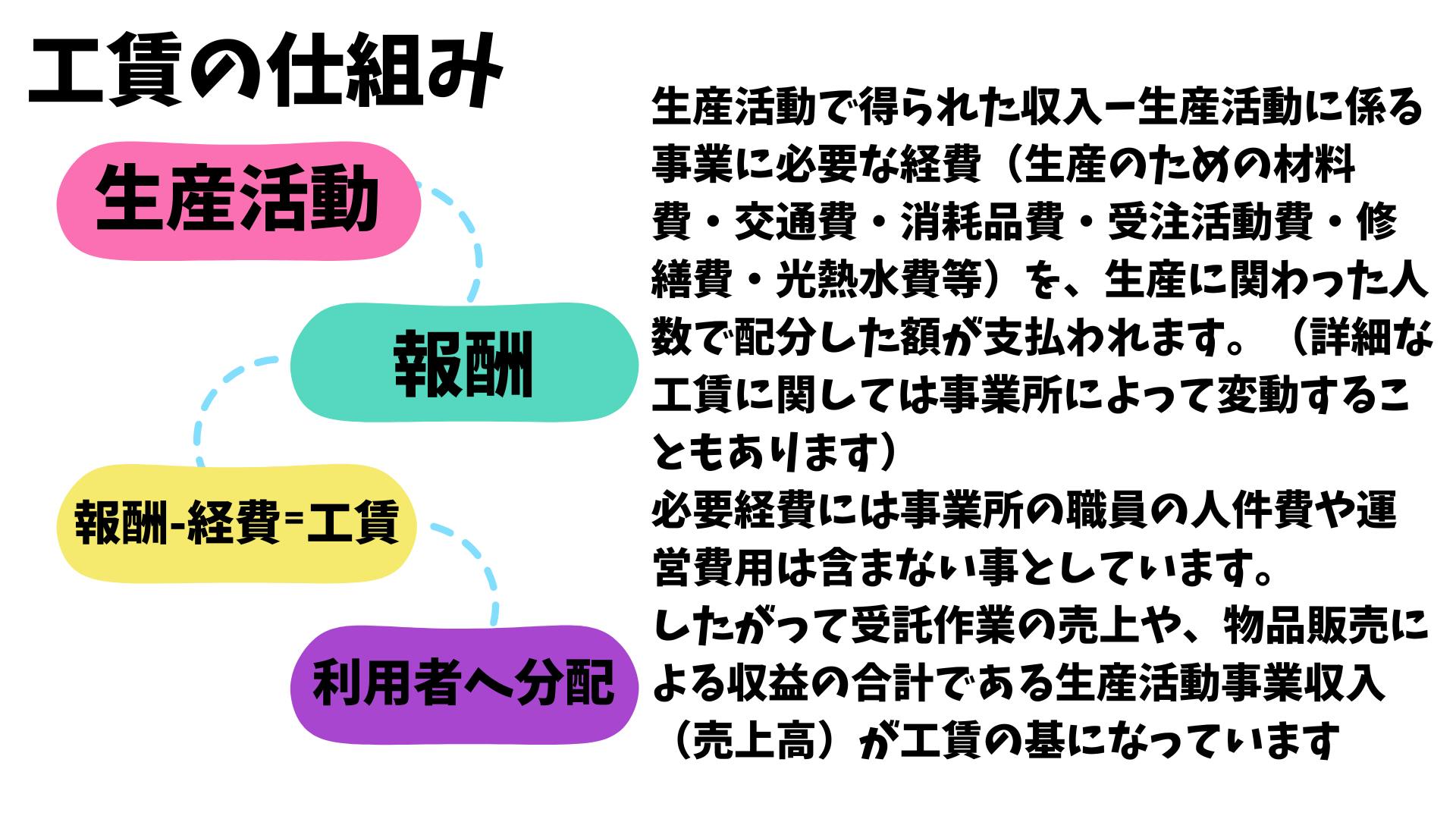 2ヶ月でおおよそ15万円程の売上があり、そこから経費を除くと1ヶ月あたり1,500円程度の工賃を利用者へ配分することが出来ます。