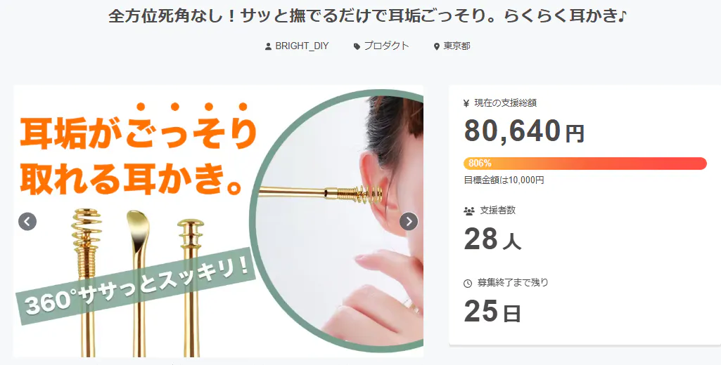 この度は「全方位死角なし!サッと撫でるだけで耳垢ごっそり。らくらく耳かき♪」に支援頂き誠にありがとうございます!