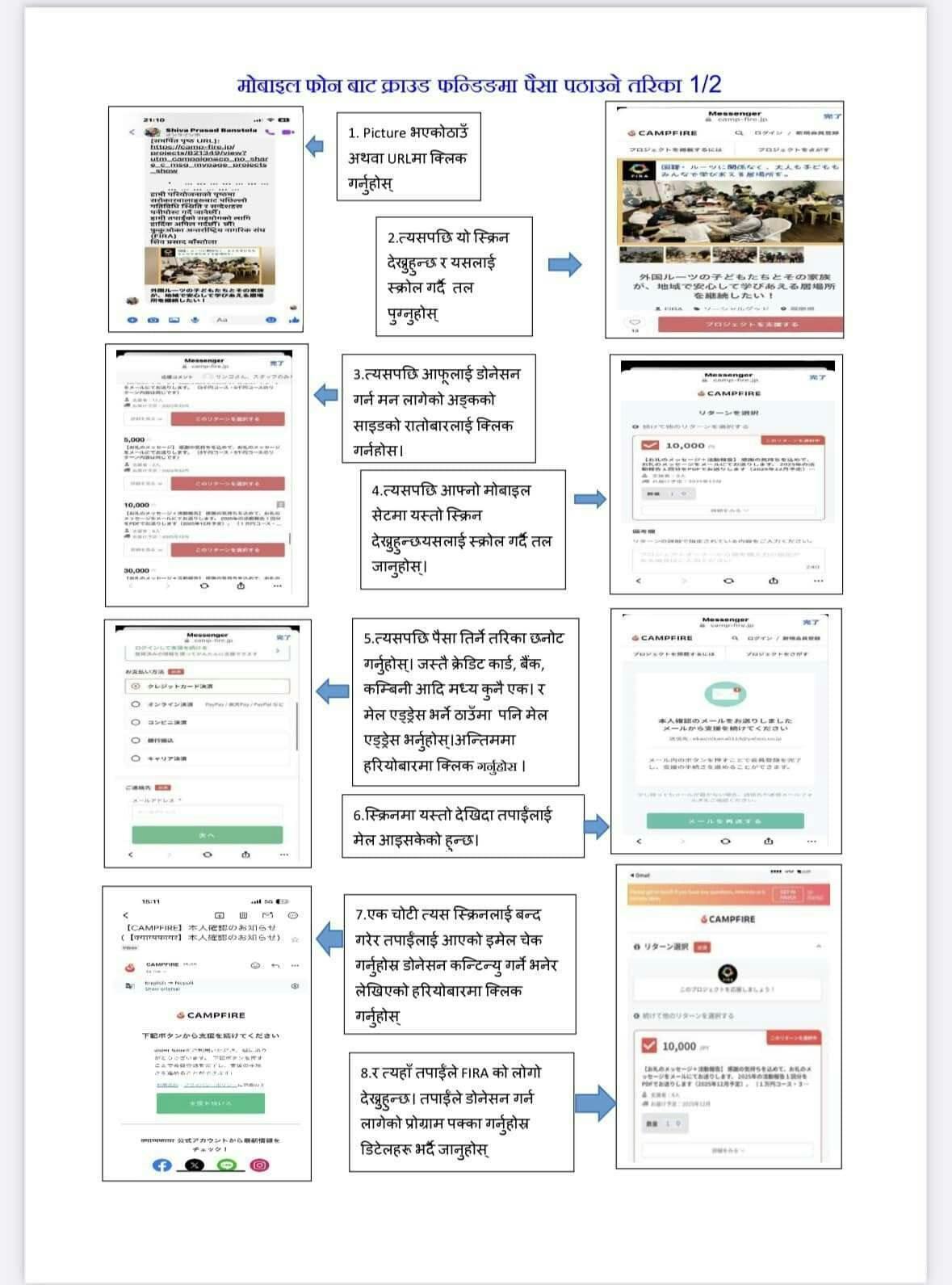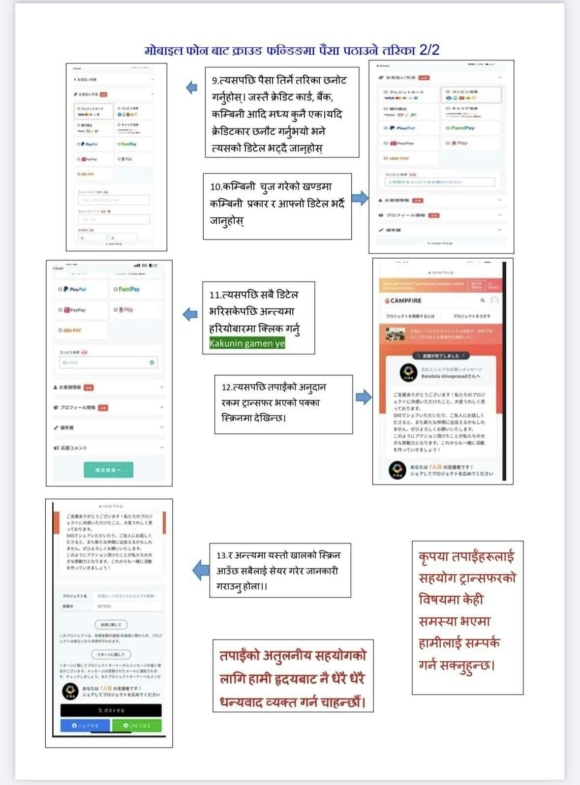 ▽こちらにはネパール語版の寄付の手順をのせておきます。