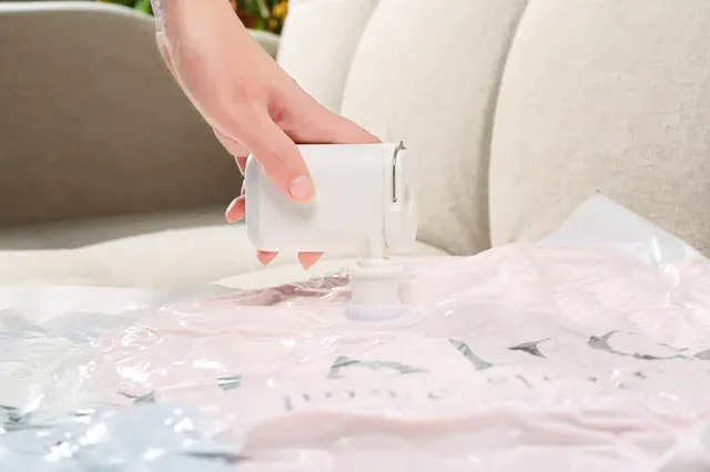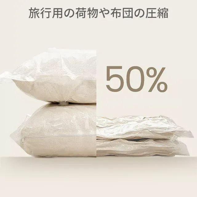 「AM23」は空気を抜いて使用する製品にも使用できます。衣服や布団を簡単に圧縮できるので、時短、リュックの容量節約にも繋がります。