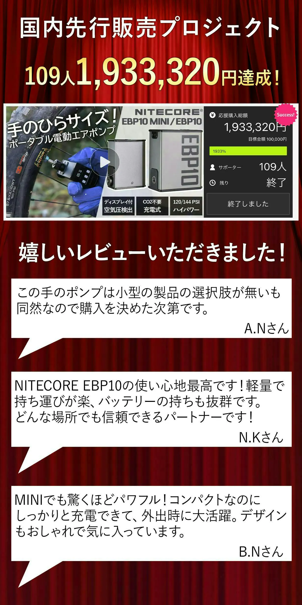 2025/04/26 21:00皆様、こんばんは!Bright DIYチームです。自転車、バイク、さらには自動車のタイヤメンテナンスに至るまで、NITECOREのEBP10シリーズはあらゆるシーンで活躍します。コンパクトなデザインながら高性能を誇るこの電動ポンプは、空気圧管理を簡単にし、安全で快適な走行をサポートします。長距離のドライブやツーリング、さらには日常のメンテナンスにも最適なEBP10とEBP10 MINI。1. サイクリング特に自転車愛好者にとって、タイヤの空気圧管理は欠かせません。EBP10シリーズは最大120 PSIまで対応しており、ロードバイクやマウンテンバイクのタイヤを簡単に充填できます。長距離ライドの前や、パンクした際の緊急時に、素早く充填できるため、スムーズにライディングを楽しむことができます。2. アウトドアイベントキャンプやハイキングなどのアウトドアイベントでもEBP10は重宝します。エアマットレスやボールなど、さまざまなアイテムの空気を充填できるので、快適な休息スペースを手に入れることができます。コンパクトなデザインなので、バックパックに入れても邪魔にならず、持ち運びが簡単です。NITECORE EBP10とEBP10 MINIは、さまざまな使用シーンで活躍する優れた電動ポンプです。コンパクトなデザインと高性能を兼ね備え、アウトドア活動や日常生活をより快適にサポートします。あなたのライフスタイルに合わせて、ぜひEBP10シリーズを活用してみてください!以上、Bright DIYチームでした!ご興味のある方、ぜひ支援お願い致します。https://camp-fire.jp/projects/view/821352Bright DIYチームは、当プロジェクトをもっと多くの方に知っていただきたいと考えております。よかったら、SNSでのシェア・拡散をお願い致します。#nitecore #brightdiyどうぞよろしくお願い致します。Brightチーム もっと見る
