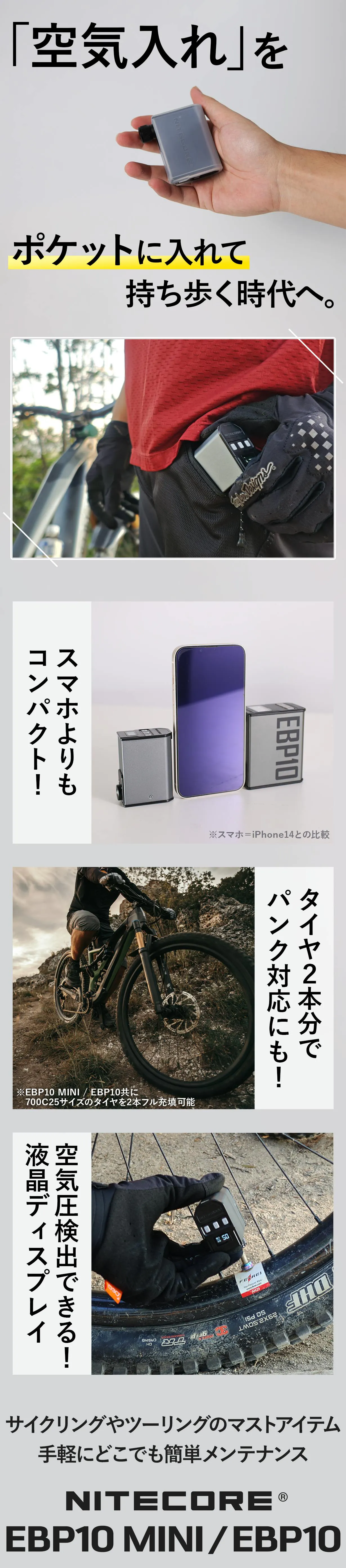 でもパンクした時の応急キットやメンテナスセットは絶対に必要、そんな時にEBP10 MINIならバッグの空きを確保しつつ、電動ポンプを持ち運べます!