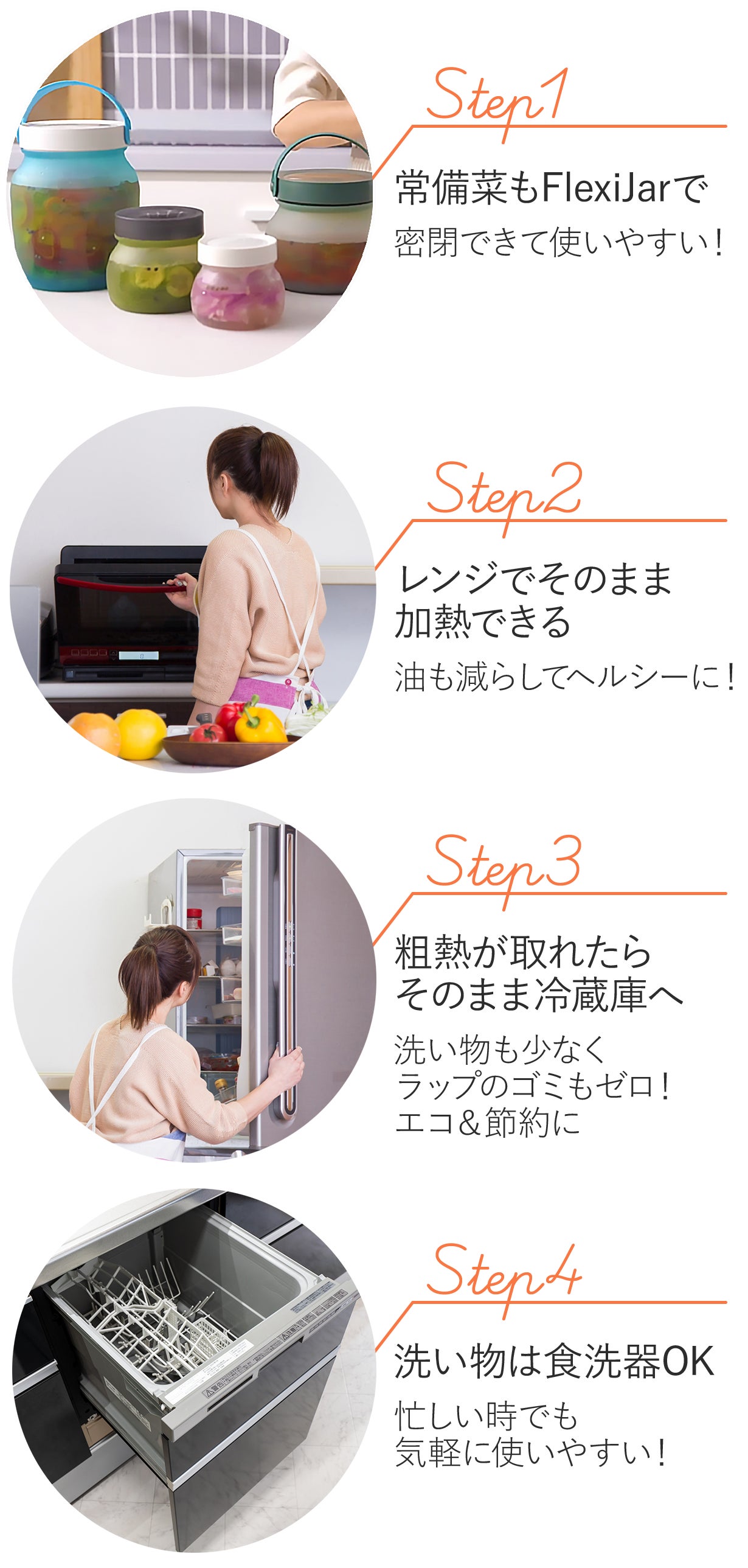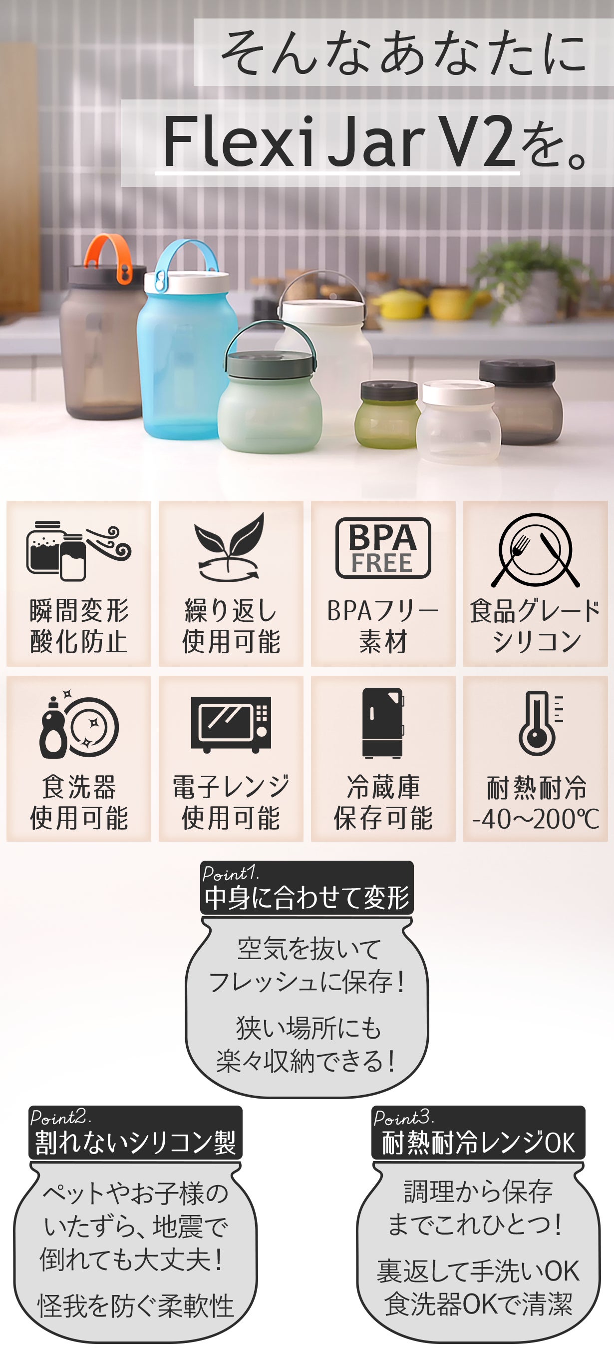 オシャレでエコな、しかも使いやすい容器はないか探していた時にFlexi Jar V2と出会いました。Flexi Jar V2はエコで、フレッシュなまま保管ができて、液体もOK、レンジや食洗器も使えて、冷蔵庫保管もできる、などまさに私が求めていたものでした。皆さまにもこの感動を届けたい!と思い、今回起案させていただきました。
