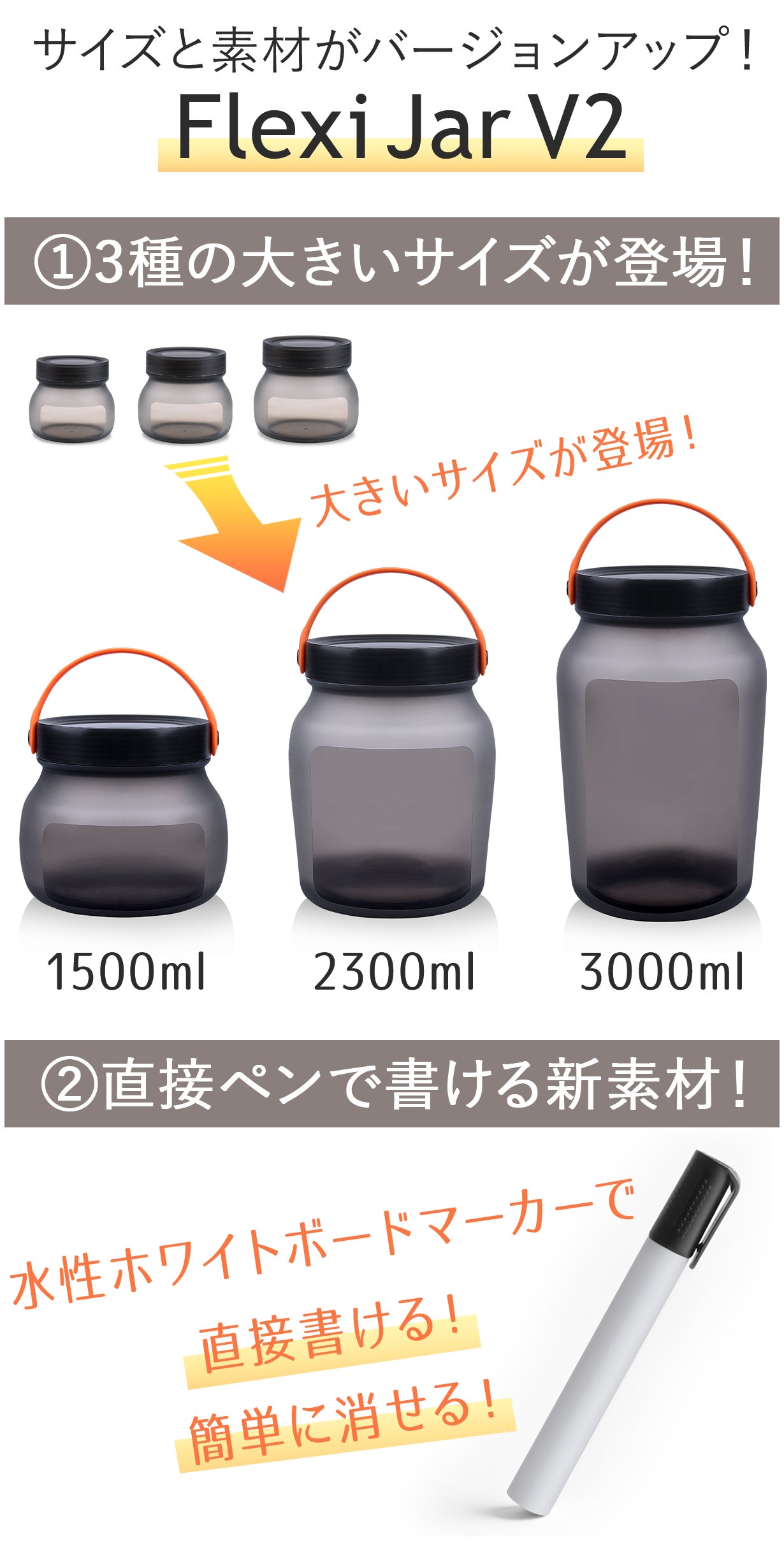 ※ハンドル付きは1500ml/2300ml/3000mlのみです。