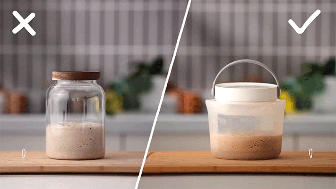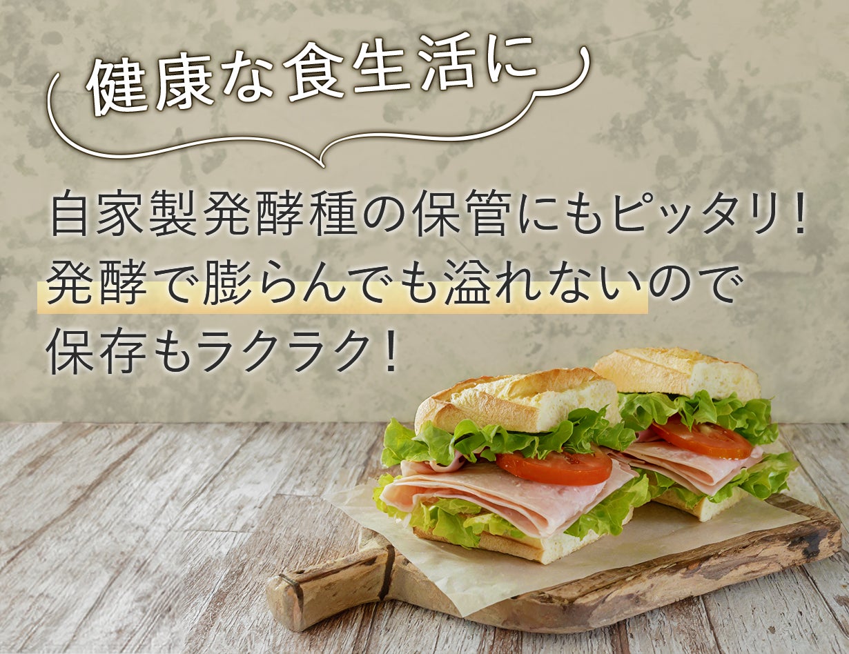 元々大きめのサイズに入れて空気を抜いておくことで、発酵でガスが出ても膨らんで溢れません。そのまま冷蔵庫でゆっくり発酵させるのにも便利です。