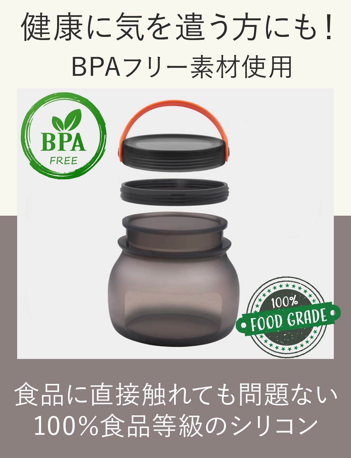 Flexi Jar V2はBPA FREEなので健康を気にする方にもご利用いただけます。