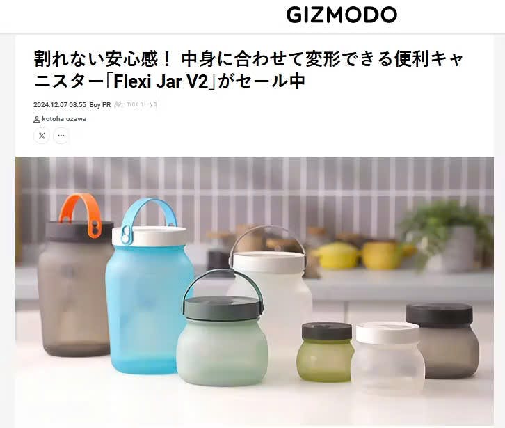 2024年12月07日、Gizmodoで「Flexi Jar V2」を紹介して頂きました。
