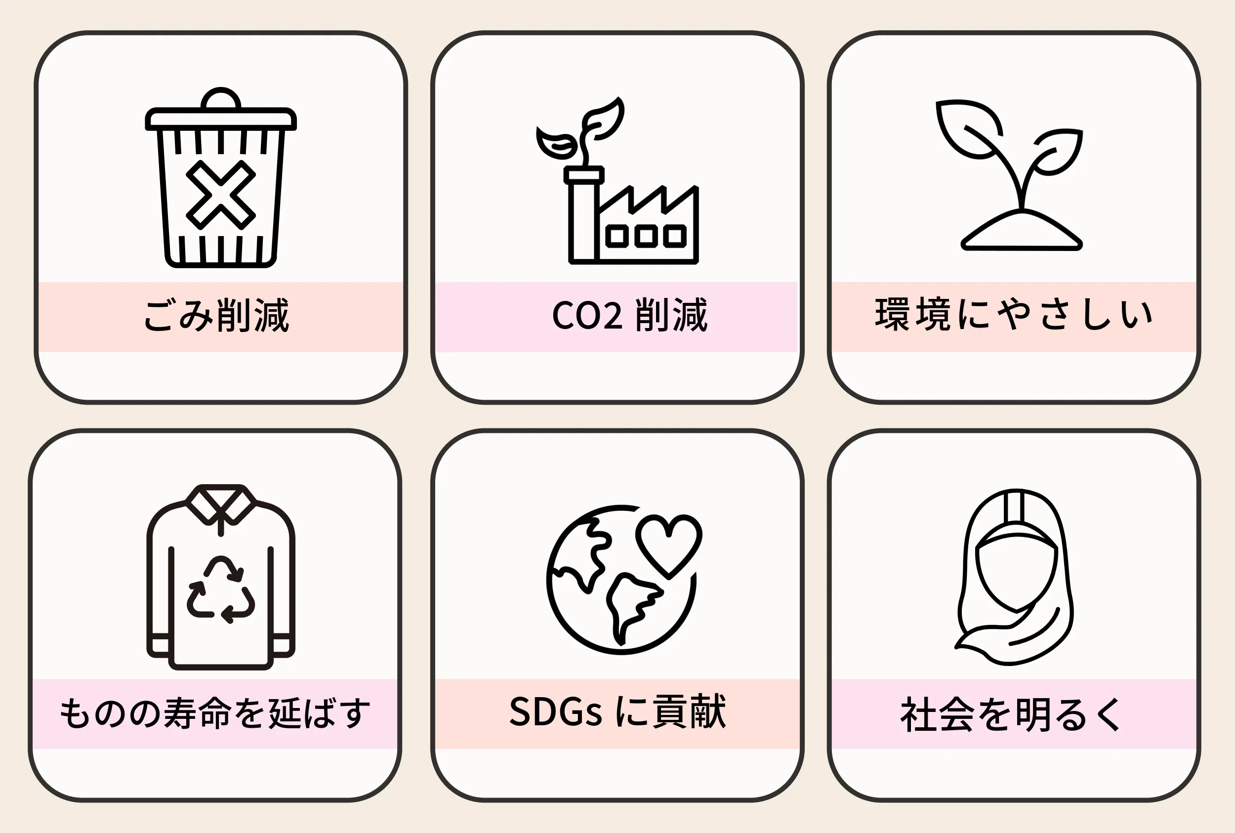 そしてこの循環で衣服が再利用出来れば、継続的に雇用を続けていく事ができ、「今あるものを捨てずに原料とする」ため、新たな原料を生み出す必要がなく、CO2を削減する事にも繋がります。