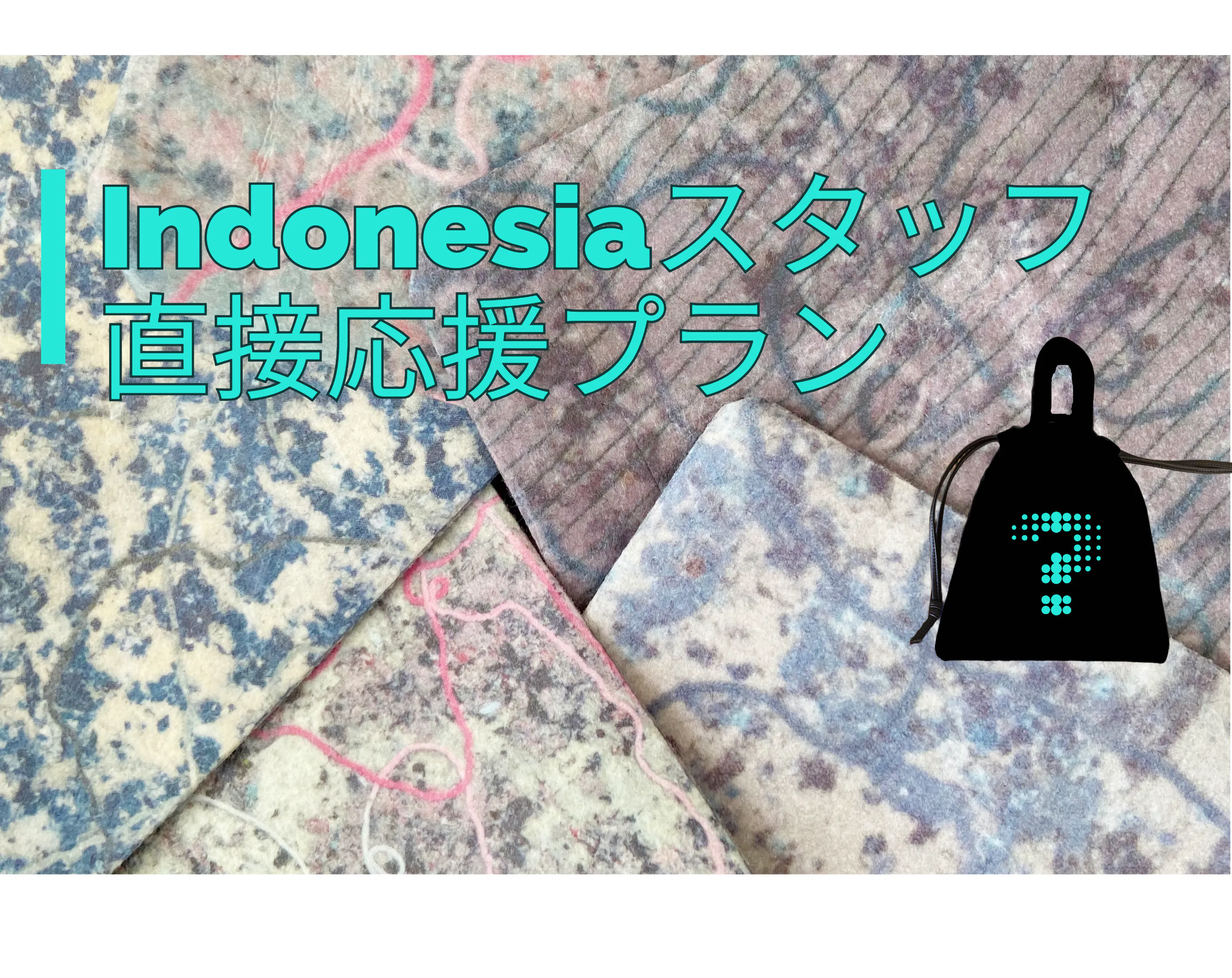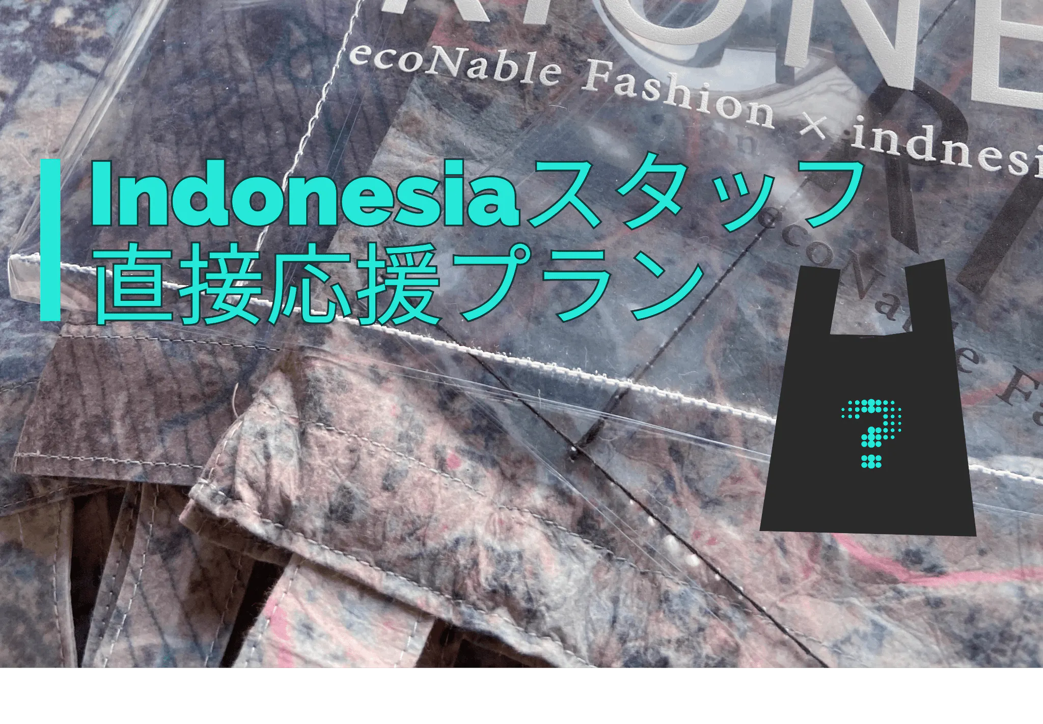 これまでご紹介しましたクリアECOバッグと巾着ミニバッグに使用するアップサイクル生地の色合いをインドネシア工場女性スタッフの方々にお任せで作っていただく、上がってくるまでどんな色・柄になっているのかワクワクしながらお待ちいただけるプランをご用意しました!