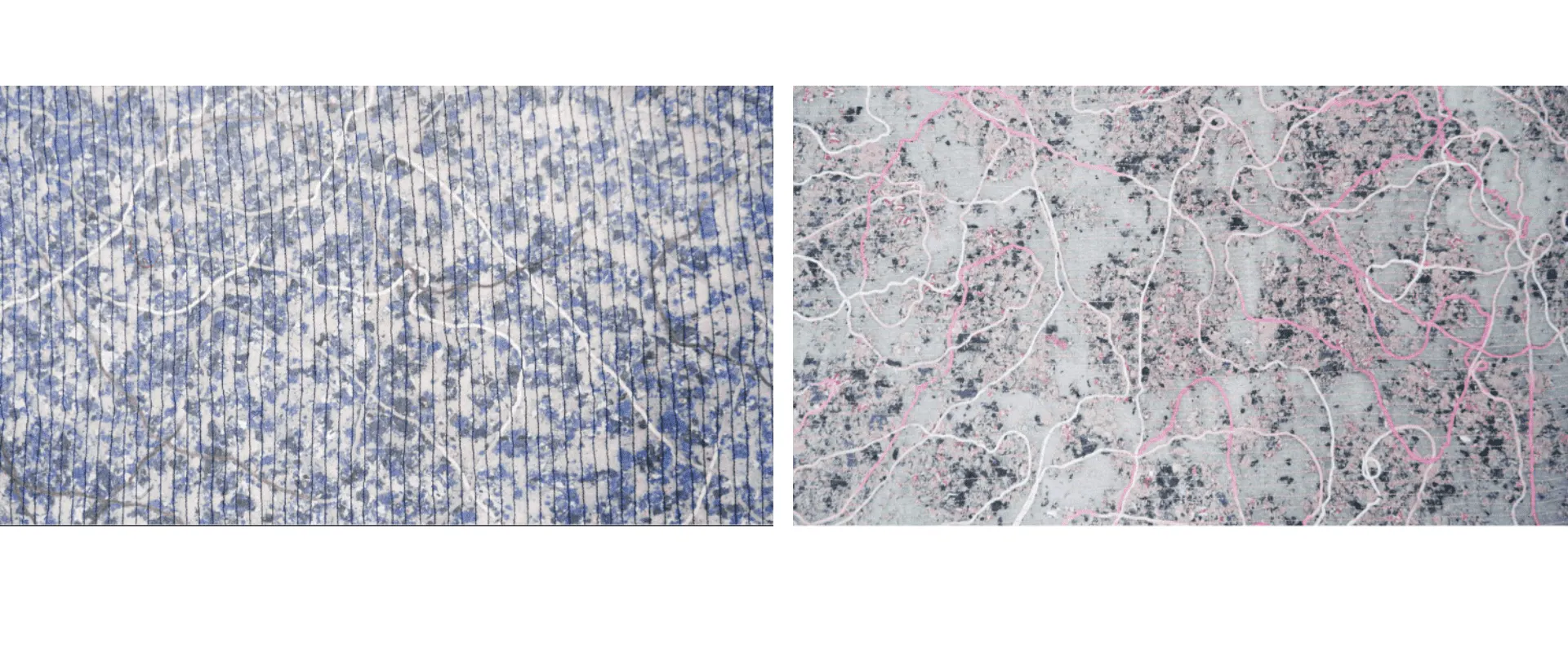 布地を細かく裁断し、わた状に近くなるまでほどいて粒繊維状にし、柄や色感を考え手作業で組み合わせ生地として仕上げていきます。