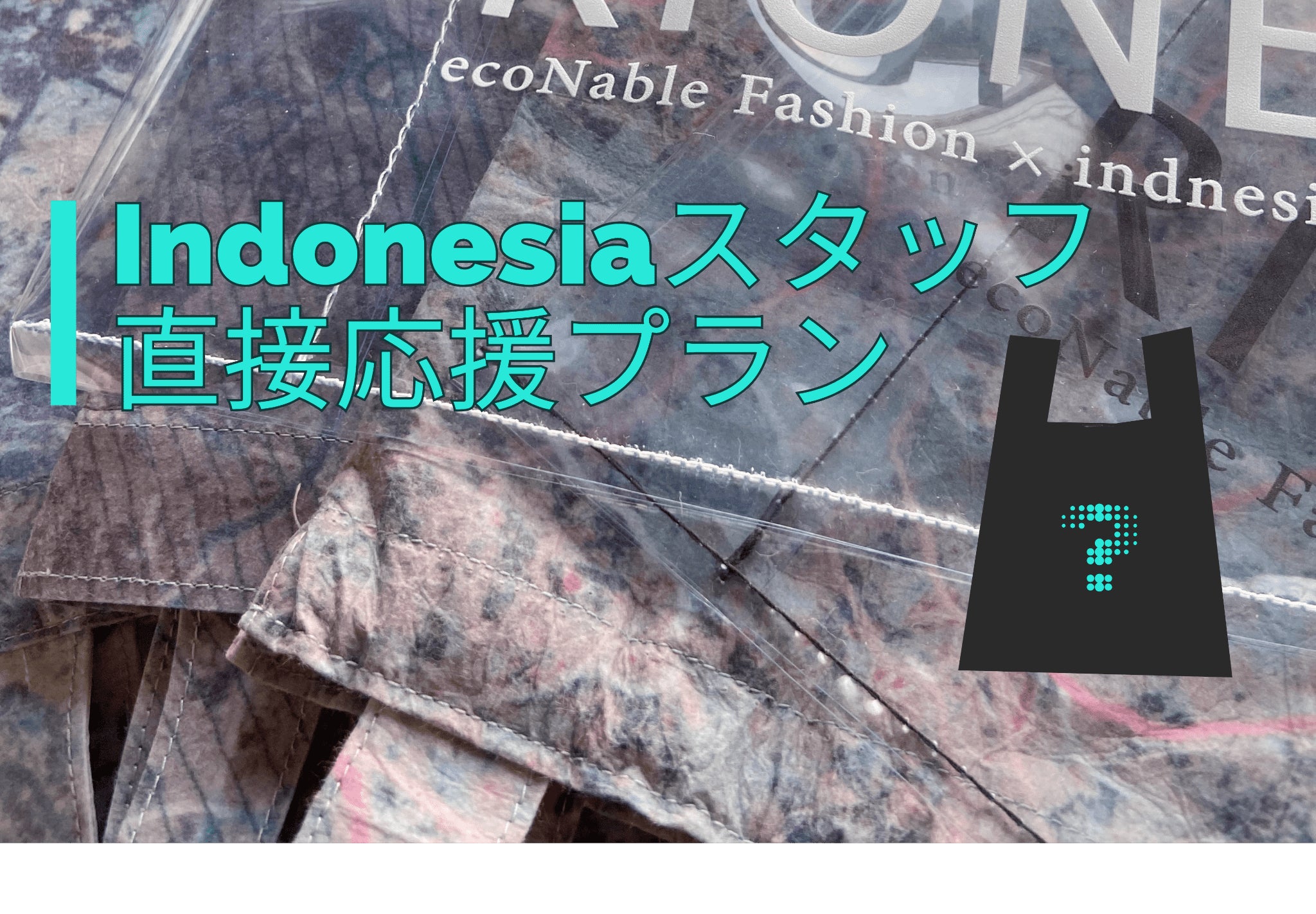 これまでご紹介しましたクリアECOバッグと巾着ミニバッグに使用するアップサイクル生地の色合いをインドネシア工場女性スタッフの方々にお任せで作っていただく、上がってくるまでどんな色・柄になっているのかワクワクしながらお待ちいただけるプランをご用意しました!