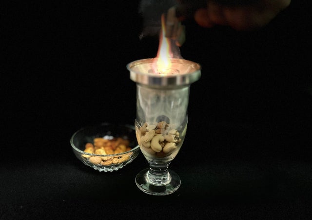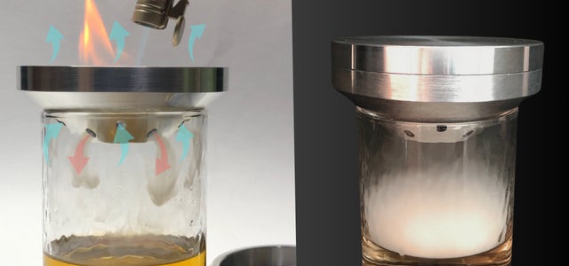 おつまみなどの食材、お好みのお酒をグラスに入れて炙るだけのお手軽さ。