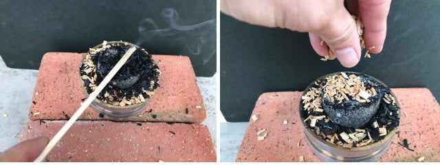 ポイント 10~15分ごとに燃えたチップをカップ周りに落として新しいチップを追加