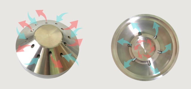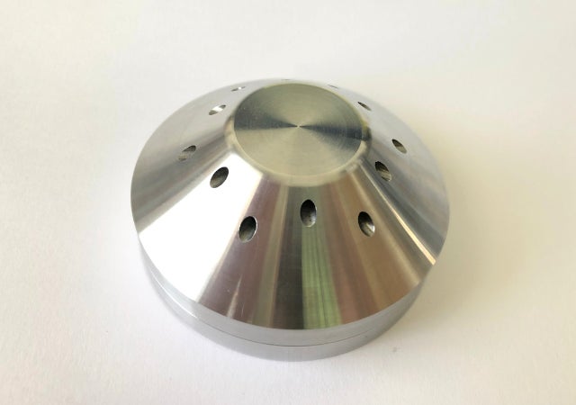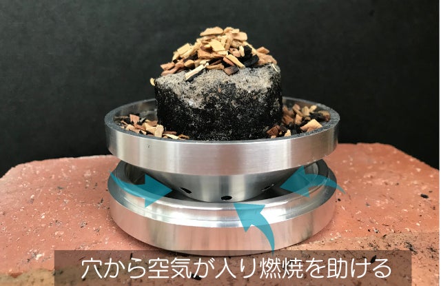 チップを炙り発生した煙が効率よく流入し、尚且つ灰がグラス内に落ちないように、穴径は小さく穴の数を多くなるように緻密に設計。