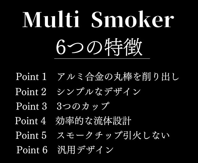 これまでスモーカーに関して、大変便利で素晴らしい商品がたくさん市場に流通しています。今回開発した【Multi Smoker】は、今までにない驚きと感動をお届けできると信じており、おすすめ出来る商品です。