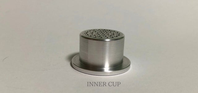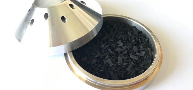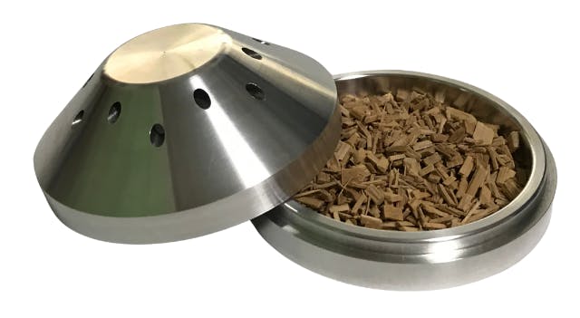 主に、冷燻と熱燻使用時にチップを入れるカップになります。底面からの熱源を伝導しチップを燃やします。また、グラストップスモーカー使用時の蓋の役割を担う。グラスを密閉状態にし煙を逃がさない。