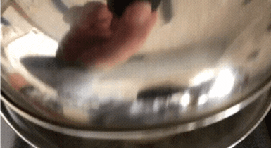 料理の仕上げに、フライパンへ加熱したスモーカーを入れて蓋をする。