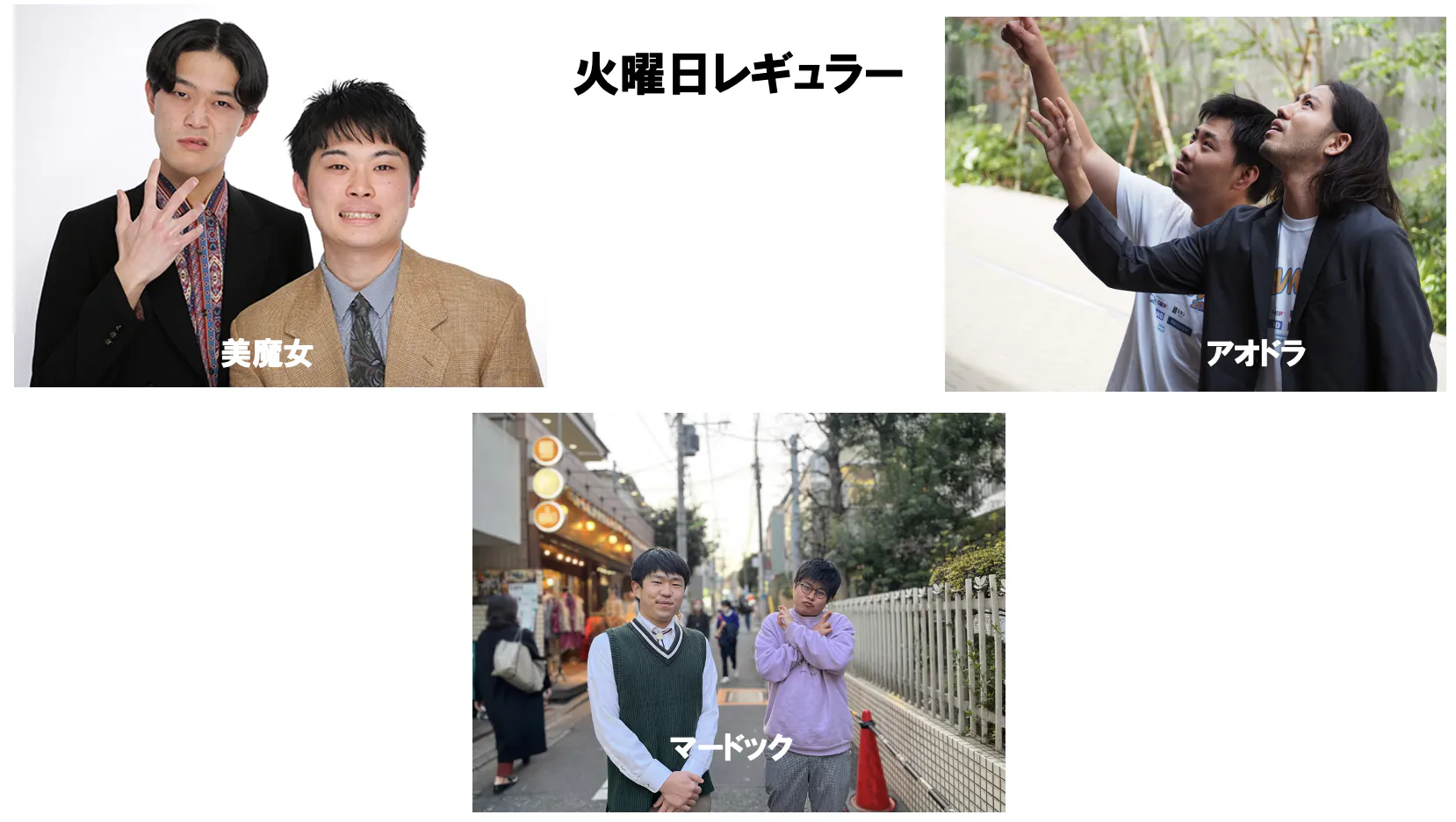 月曜日・火曜日・水曜日15時18時開演の2部制