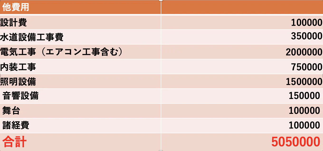 現在、融資も含め下北GRIPから賄える費用は7000000円。