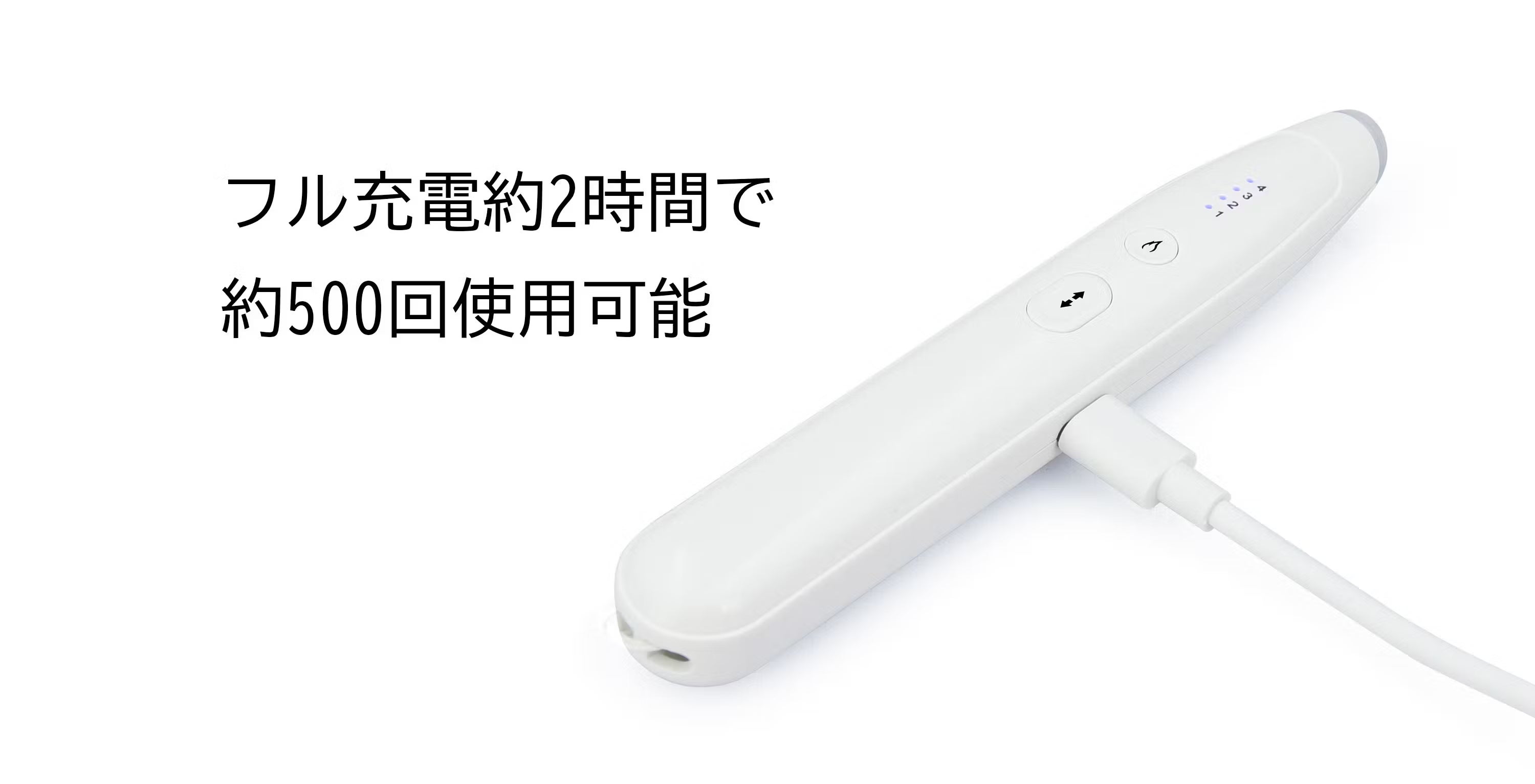 KAYUKUARAHENは電池不要で充電式。フル充電で約500回使用できるため、外出先や旅行でも手軽に使えます。繰り返し使えるので、経済的で環境にも優しい設計です。