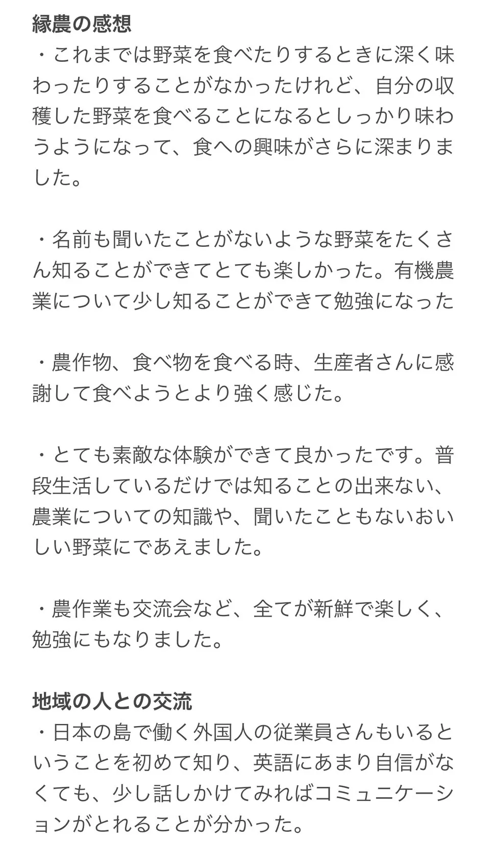 ●以下は前回参加した学生さんからいただいた感想やご意見です。