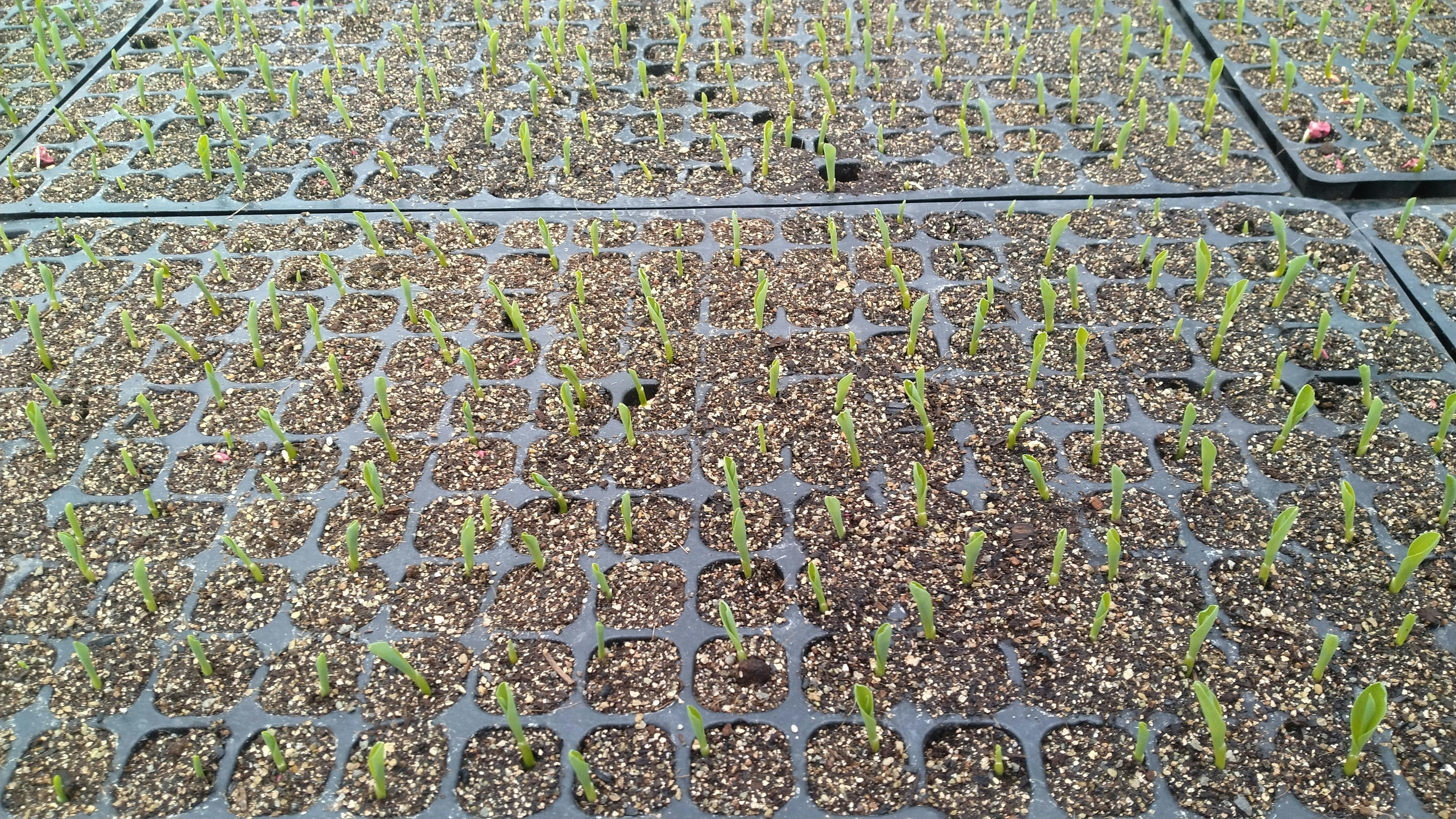 昨年はピュアホワイトを多めに播種しましたが、発芽率が30%程度でした、今年はプラチナコーンを先に撒いてみましたが、発芽率が90%超えております。