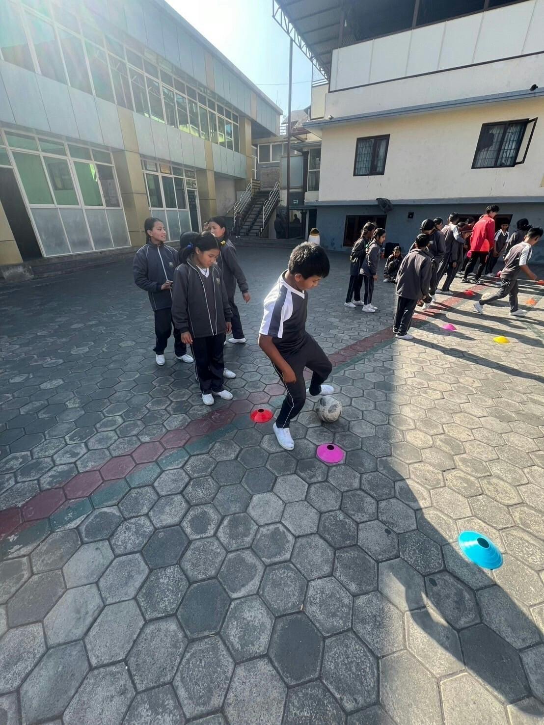 一日目は、現地の子どもたちにサッカー授業を行いました!7時間で7クラスを担当させていただき、子どもたちにとっても、私たちにとっても有意義な時間となりました。想定していた以上に、子どもたちにとってサッカーは新しい挑戦だったようで、予定していたカリキュラムを臨機応変にアレンジしながら進めました。子どもたちの反応と授業の工夫最初に自己紹介をした際、用意していた紙に想像以上の興味を示してくれたことが印象的でした。日本の子どもたちよりも積極的に関わろうとする姿勢があり、オープンな雰囲気を感じました!サッカーが初めての子も多かったため、ただ教えるだけではなく、「どうしたら真っ直ぐ蹴れるのか?」「どうしたらドリブルが速くなるのか?」 と問いかけながら、子どもたち自身に考えてもらうことを大切にしました。グループで話し合う時間を設け、目標を持たせながら楽しく挑戦する環境を作ることを意識しました。最初の成功体験の大切さ初めての体験は、その後の意欲を左右するとても重要なものと考えています。たとえば、食べ物でも最初の印象が悪いと「もう食べたくない」となってしまうように、サッカーも「楽しい!」と思ってもらえるかどうかが大切です。そこで、最初にぶつかる壁をなるべく低く設定し、「努力すればできる!」という成功体験を積んでもらうことを意識しました。初めは苦戦していた子どもたちも、回数を重ねるうちに少しずつ成長していく姿を見ることができ、とても嬉しかったです!振り返りと今後の課題7時間で7クラスの連続授業というのは、自分自身にとって、初めての経験でした。言葉の壁を感じる場面も多く、また30人規模の子どもたちに同時に教える難しさも改めて実感しました。それでも、試行錯誤を繰り返しながら、「どうすれば子どもたちがより楽しく学べるか?」 を考え続けた1日でした。少し疲れましたが(笑)、次回の授業ではさらに良い授業ができるように頑張りました!今後も活動した様子を報告させていただきます!