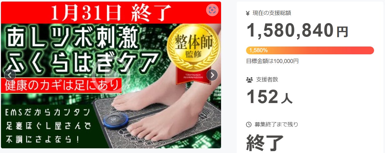 第一弾ではご支援総額1,580,840円