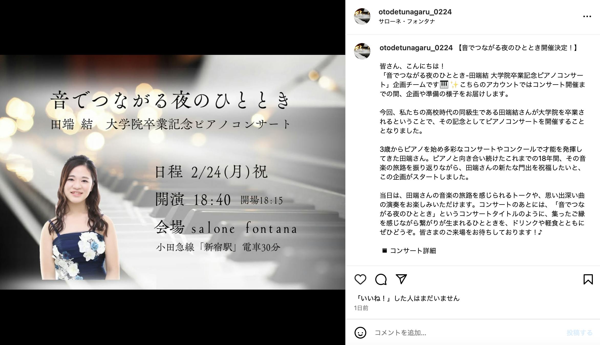「音でつながる夜のひととき-田端結 大学院卒業記念コンサート-」