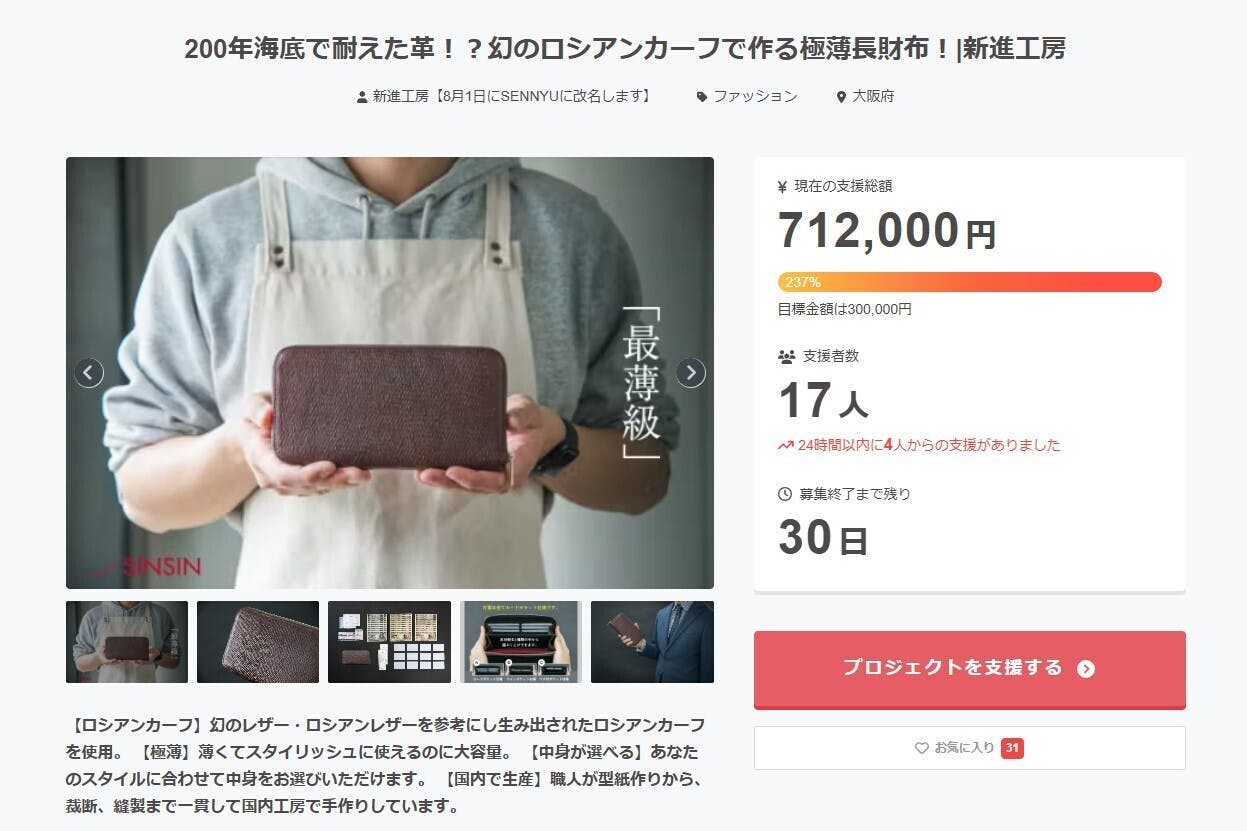 ▼「幻のロシアンカーフで作る極薄長財布」のプロジェクトページはこちら