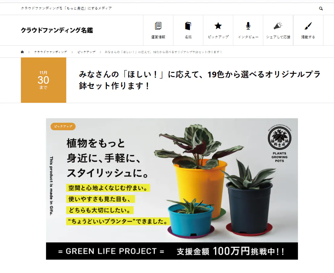 先日、『クラウドファンディング名鑑』のご担当者様にお声がけいただきページ掲載していただきました。