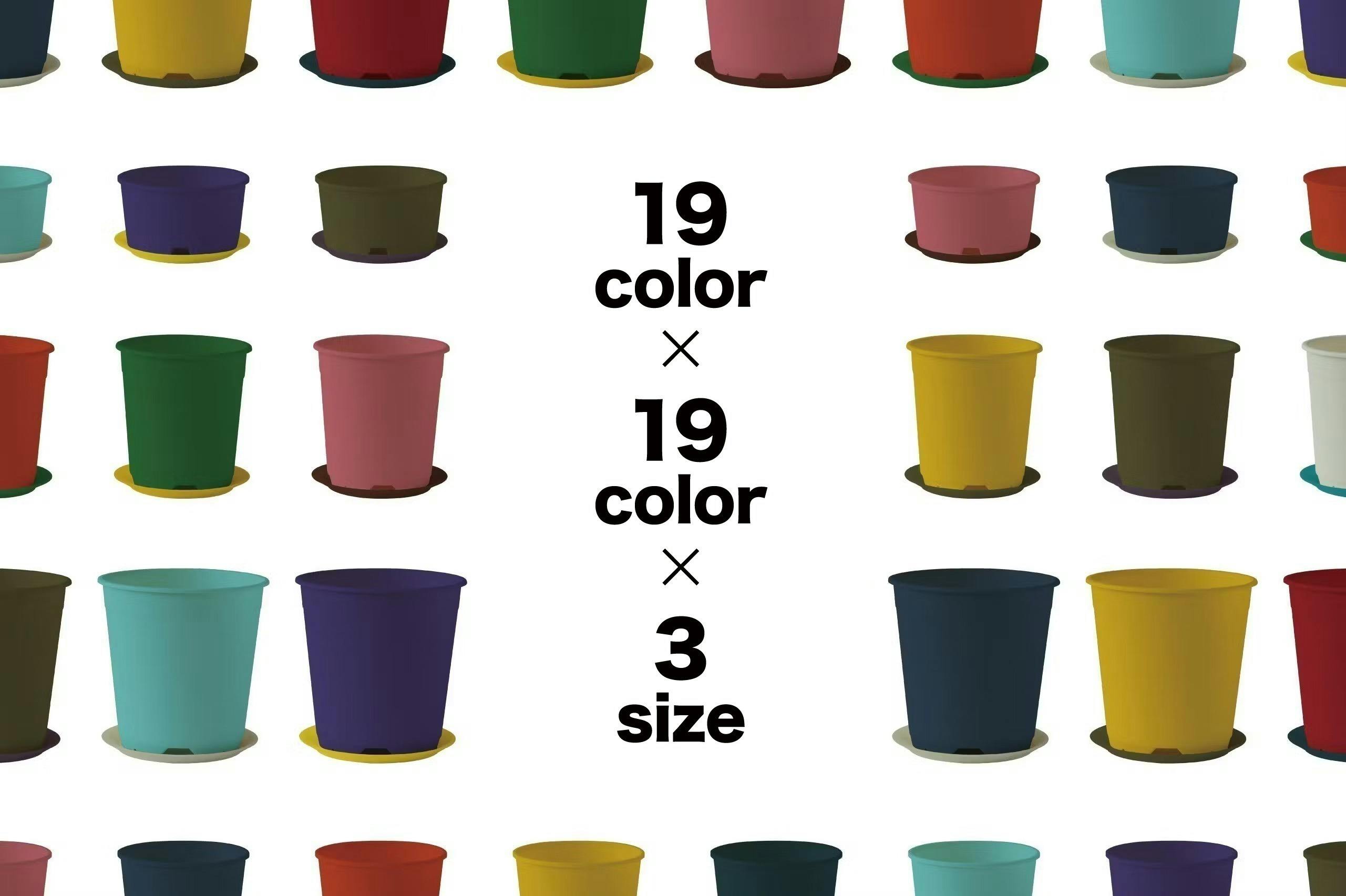 19色の鉢×19色の受け皿、色々な組み合わせで更に選ぶことが楽しくなったプラ鉢セット!選ぶだけで楽しくなる色展開です。