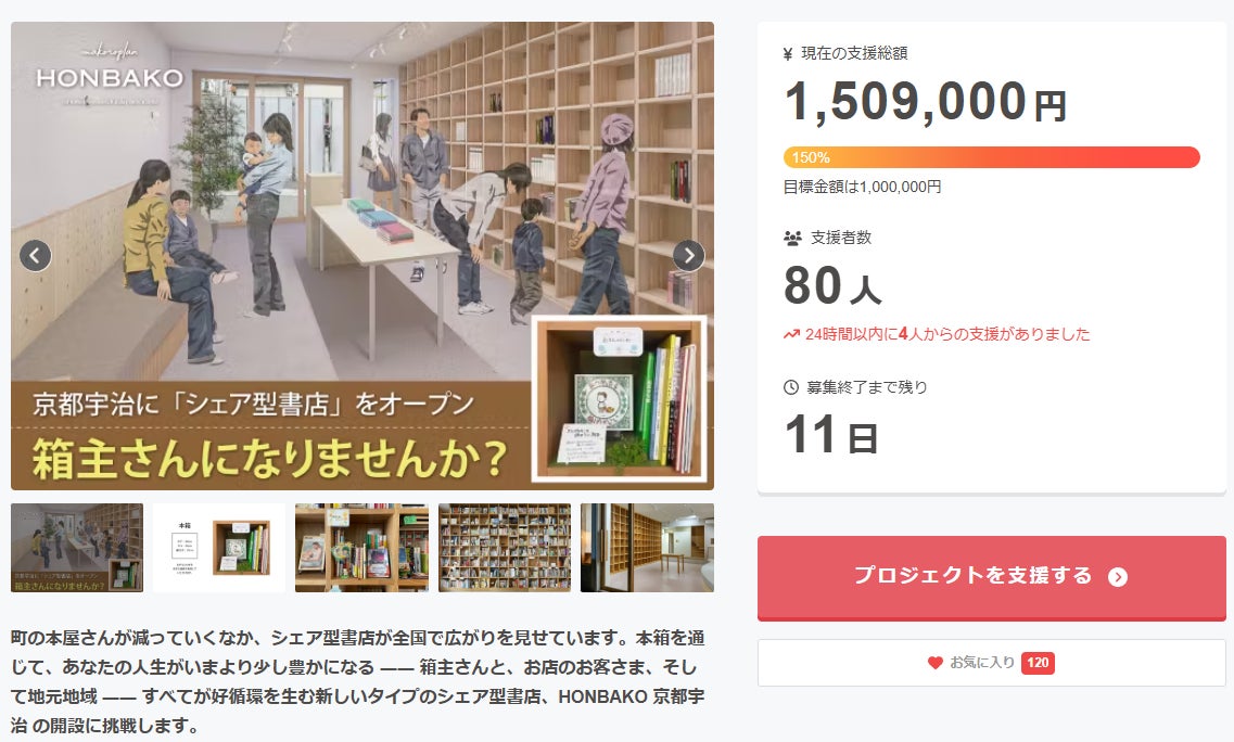 プロジェクトへのご理解や賛同、皆様からの温かいご支援と応援に支えられ、第一目標の金額としていた100万円に対し、なんと150万円を超えるご支援が集まりました(2025年4月18日現在)。本箱のお申し込みは、すでに60名を超えています。予想をはるかに超える反響に、感動と感謝の気持ちでいっぱいです!