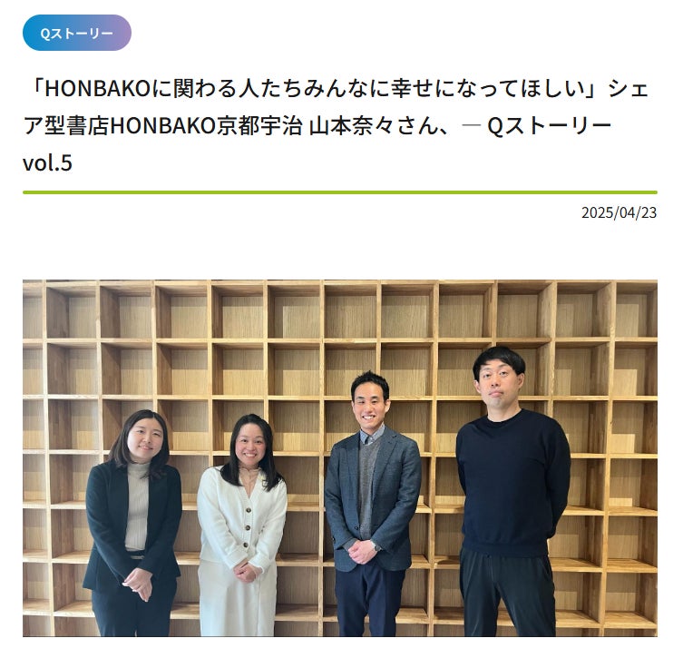 急遽、出来立てホヤホヤのHONBAKO京都宇治で4月1日に取材?してくださったものが、Qストーリーとして公開されました。