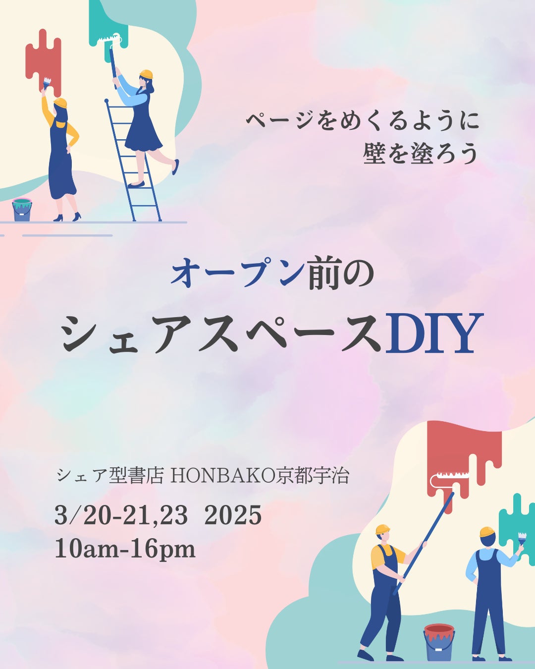 みんなで壁にペンキを塗ったり、本箱を磨いたり、たくさんのご協力で店舗は完成に向かいました。