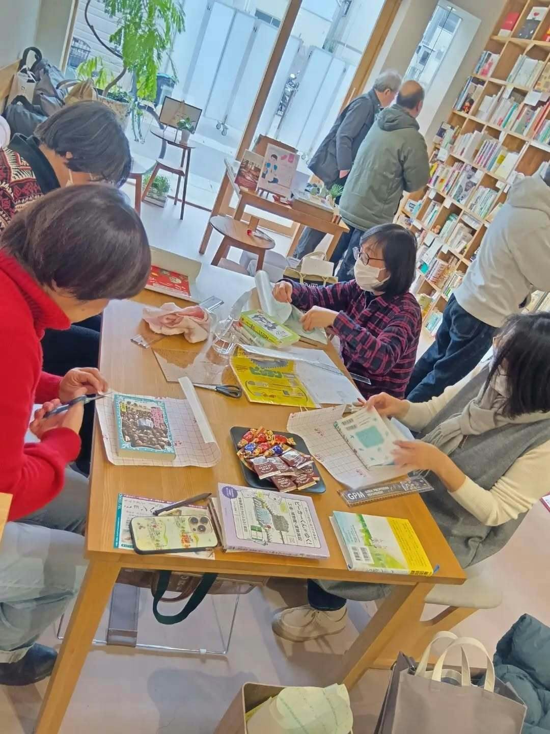 たまたま来店されたお客様も、ブックコートの作業風景をご覧になって、