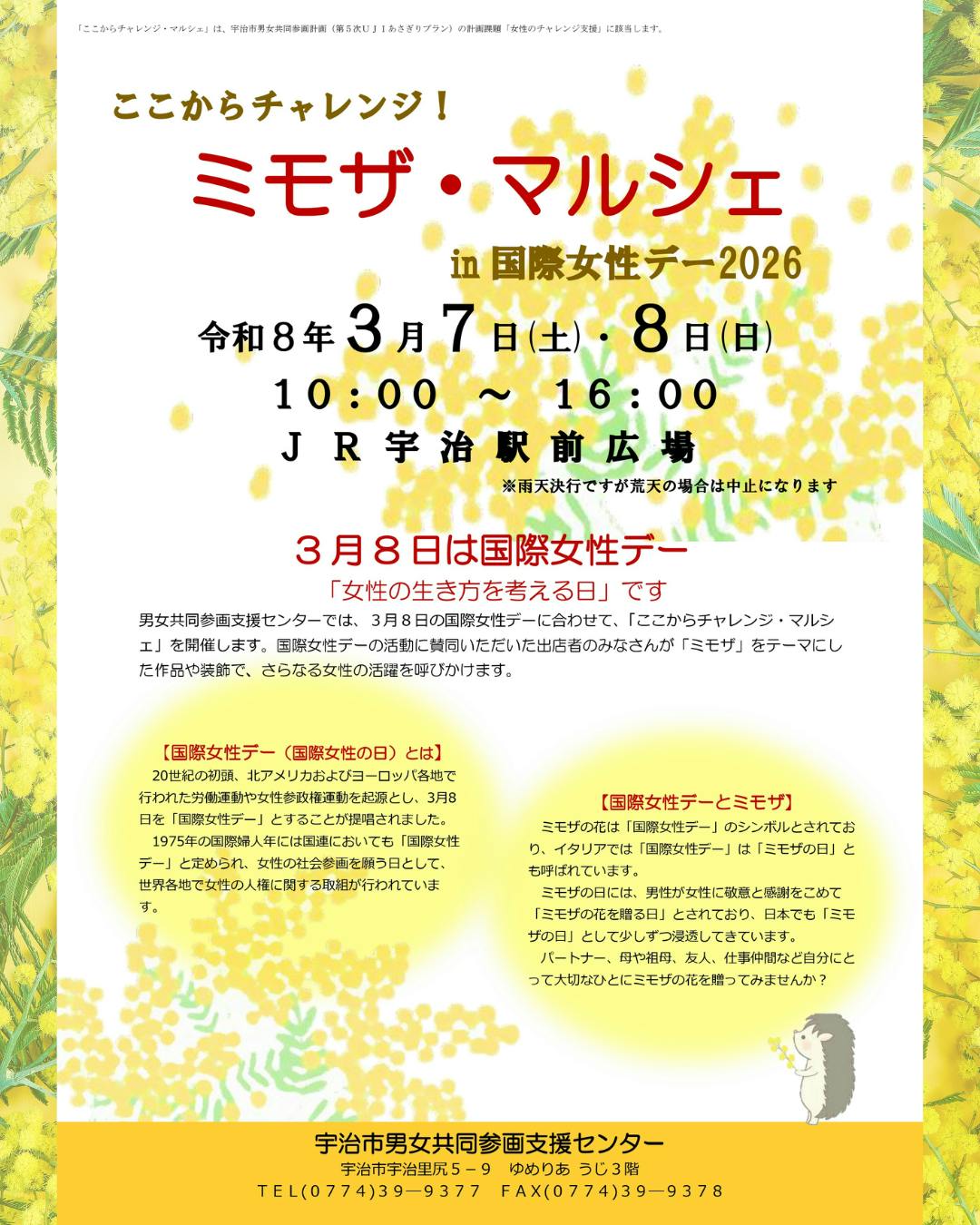 3月は宇治市主催の地域イベント「ミモザマルシェ」に出店します。