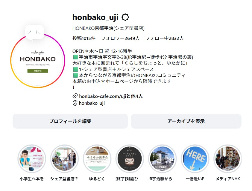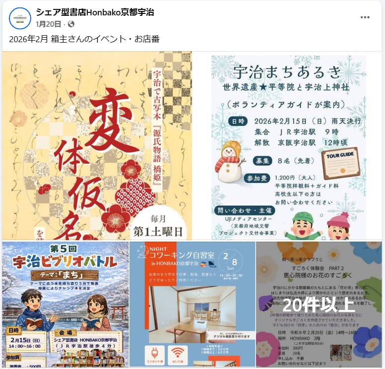 最新情報はInstagramで発信しています。https://www.instagram.com/honbako_uji/