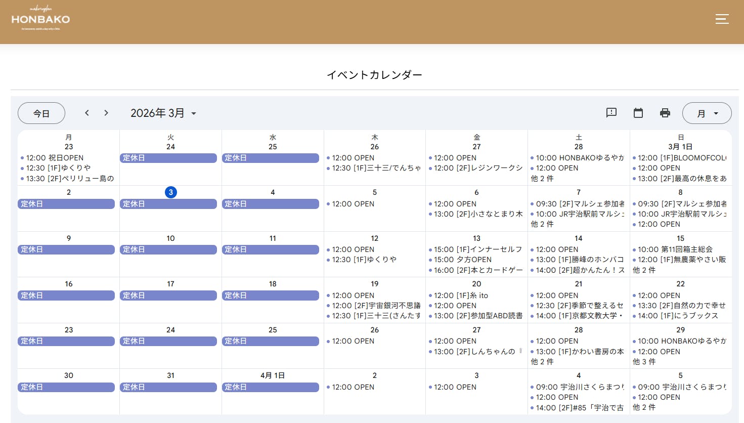 箱主さんのイベント情報は、ホームページのイベントカレンダーでもご確認いただけます。