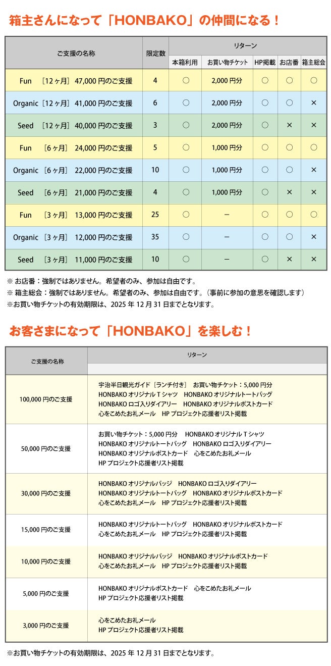 ※1:クラウドファンディングで「箱主さんオーナー権」にご支援以降、本の入荷を行っていただけます。