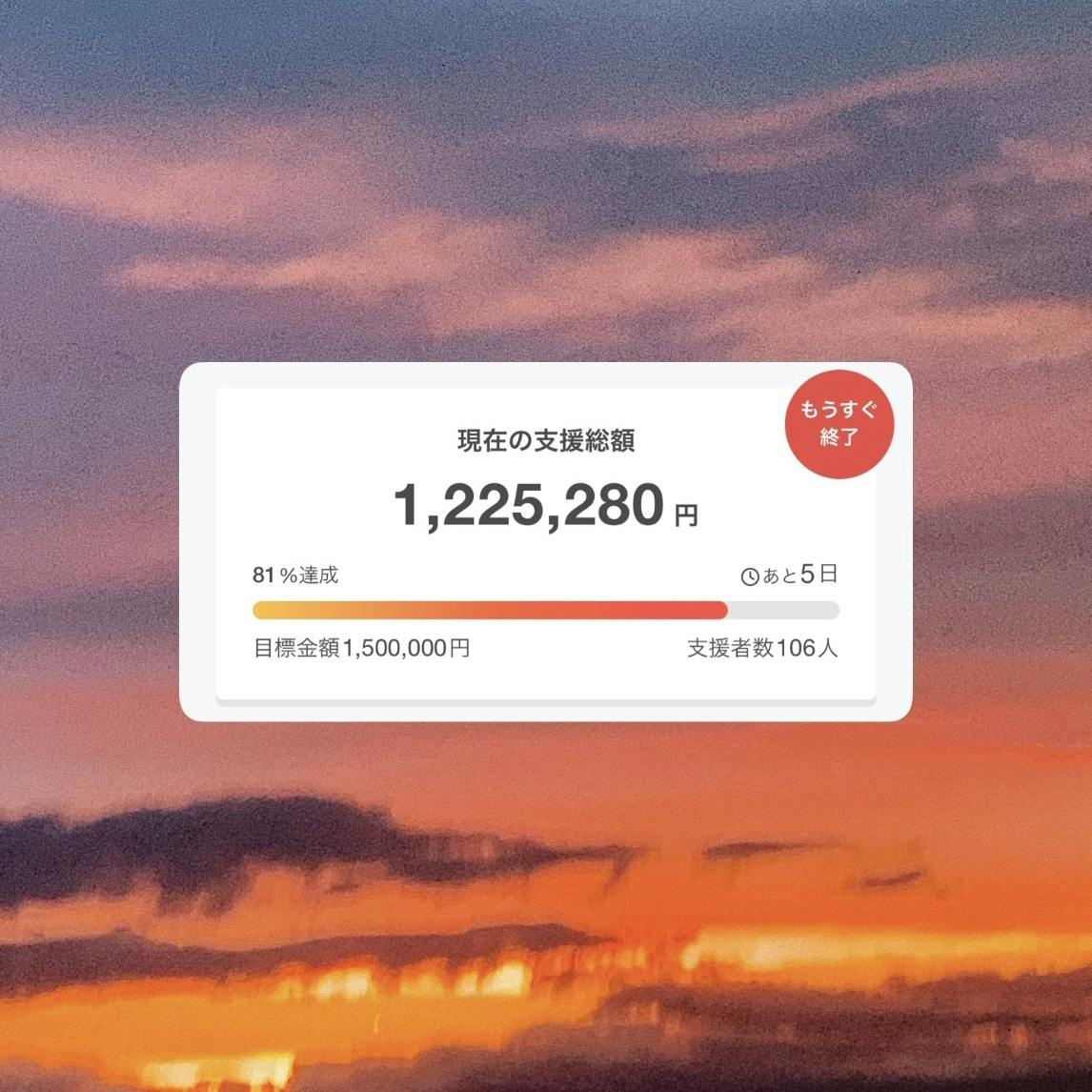 106名のご支援者様ありがとうございます!✴︎80%、100人突破したぞおおおおー!!!