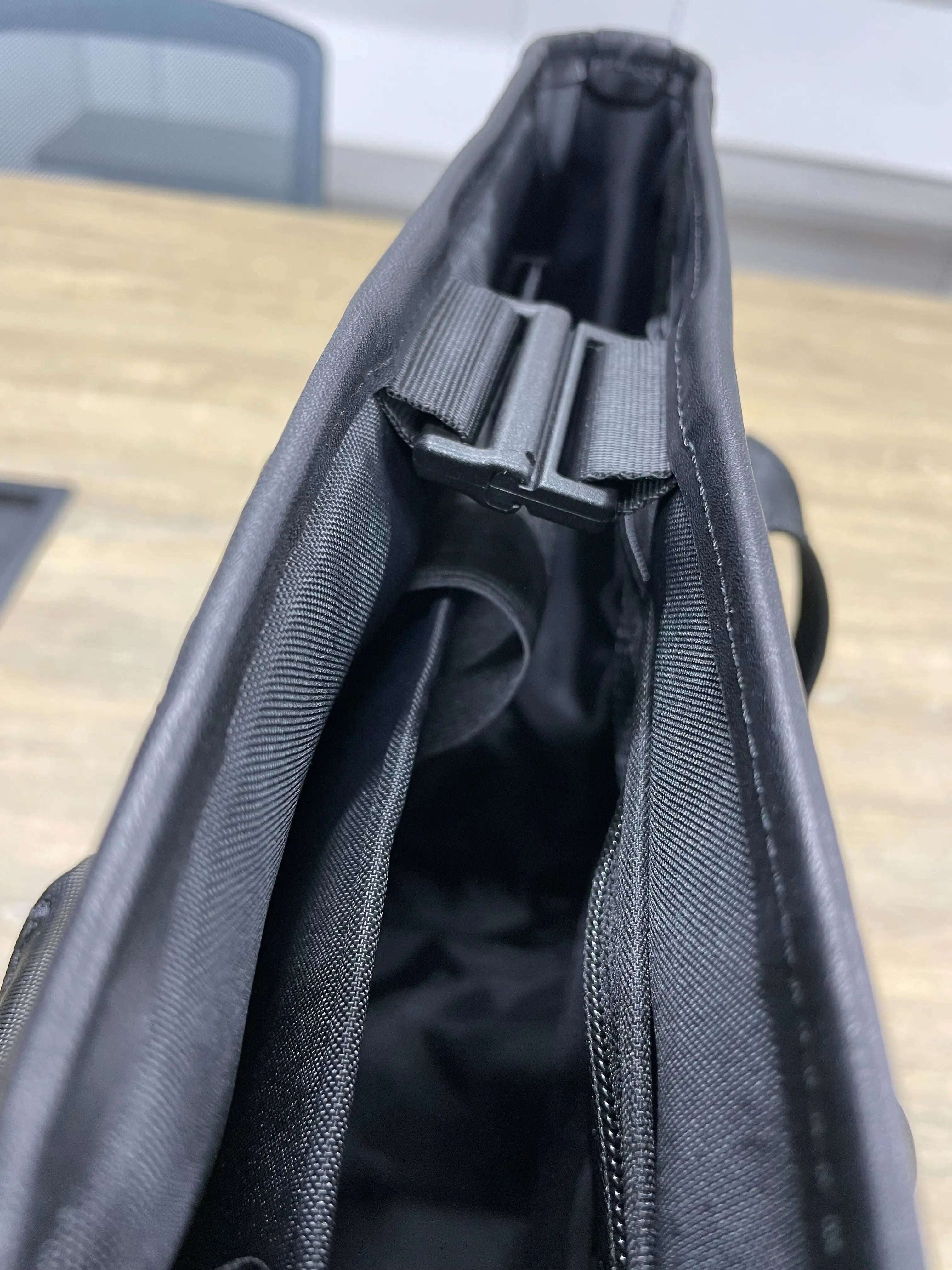 その為バッグの収納スペースの高さをフルで使うことが出来、コンパクトなサイズとPC収納を実現しております。