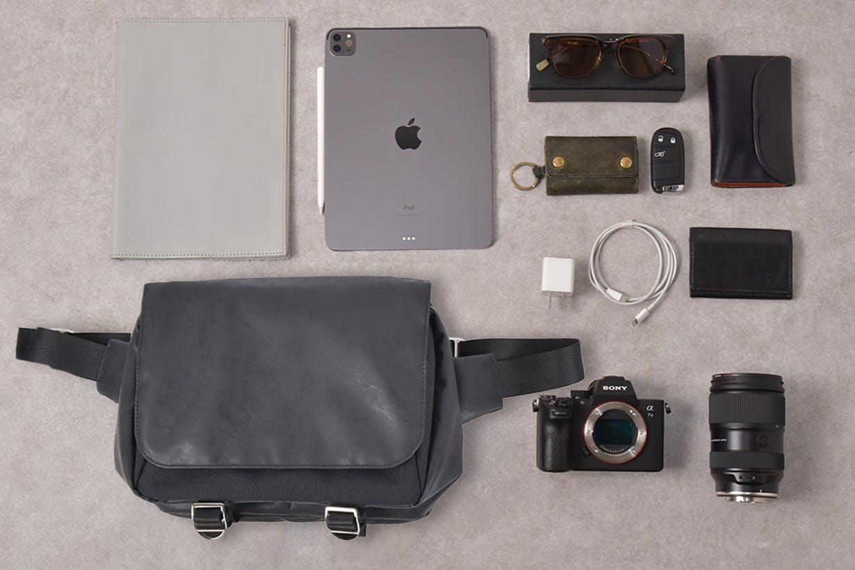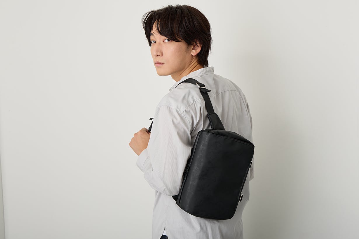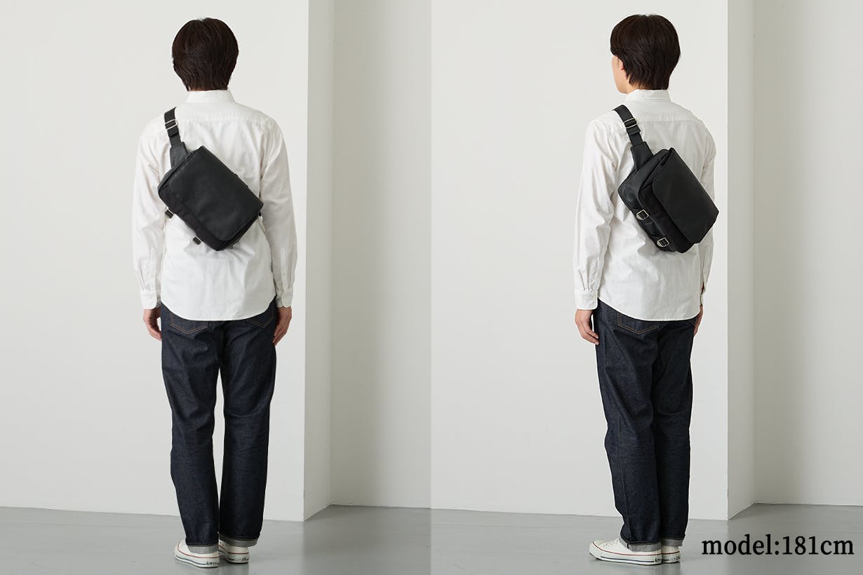 高い耐久性と、高耐久生地に施したアンティーク加工による長く持続する高級感が備わったスリングバッグが、皆さまの毎日の相棒になってくれることを願っています。